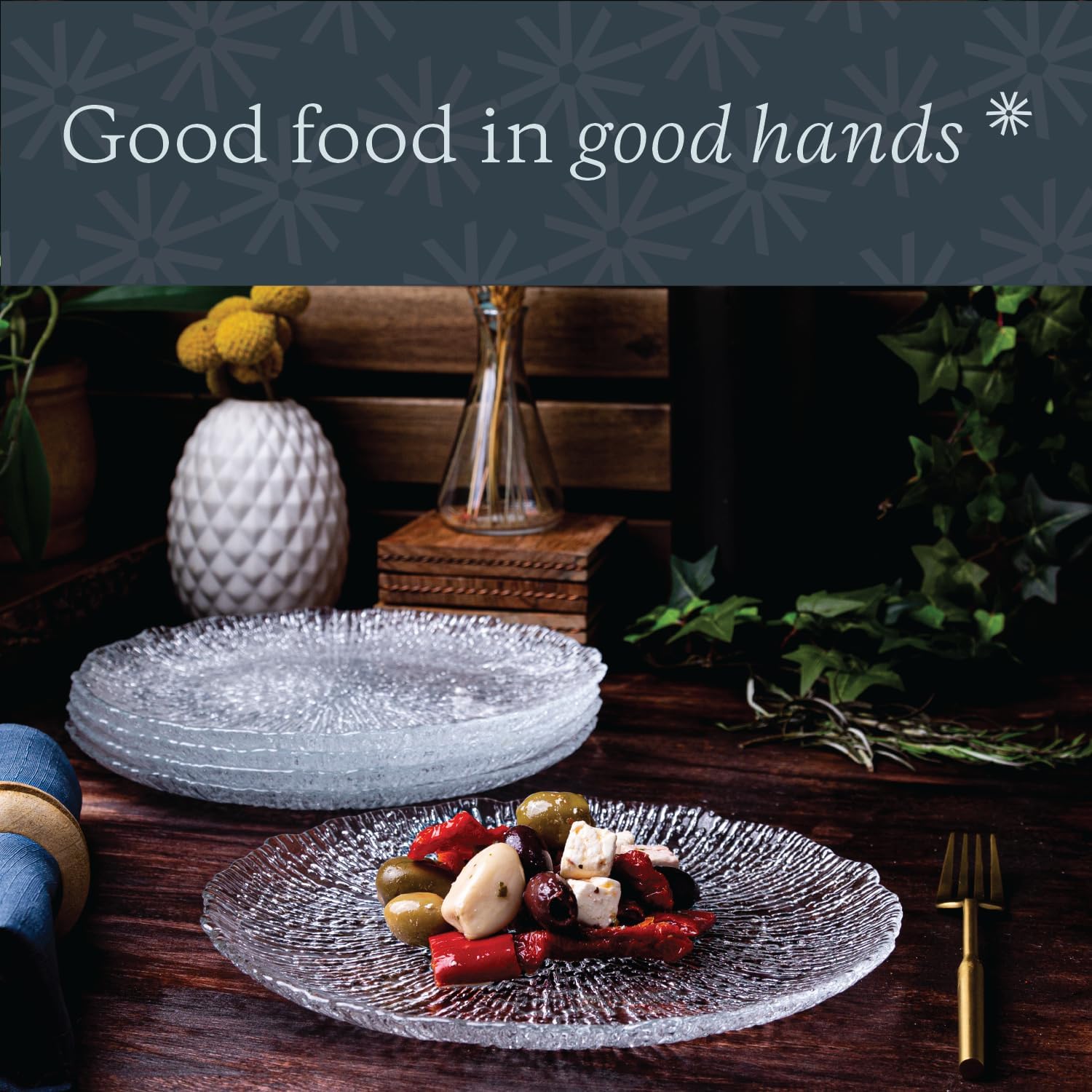 Vikko Salad Plate, Set of 6 Glass Plates, 8.5 Inch Dessert, Salad, Appetizer Plate, Elegant Textured Glass Design, Stackable Plates For Special Occasion, Dishwasher Safe