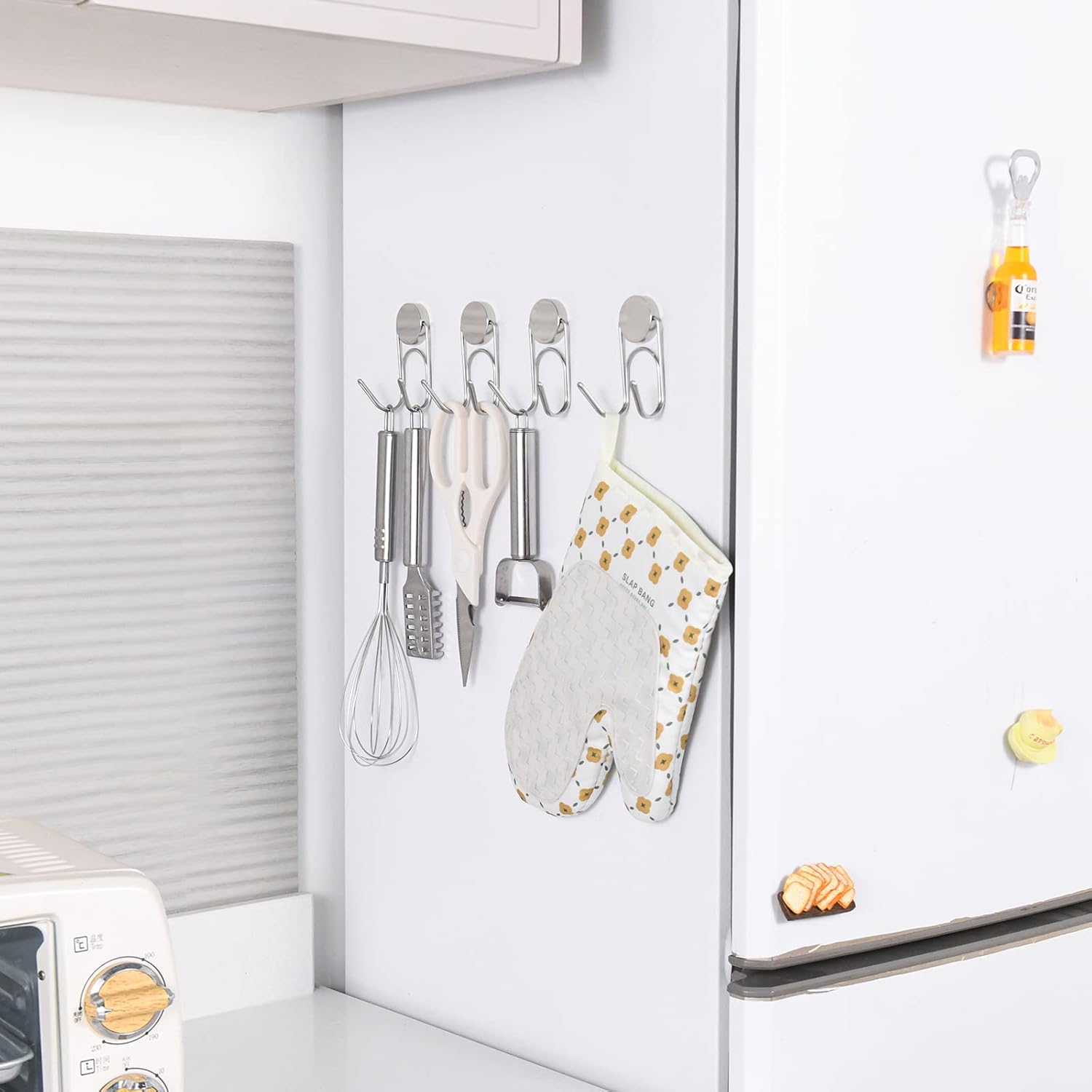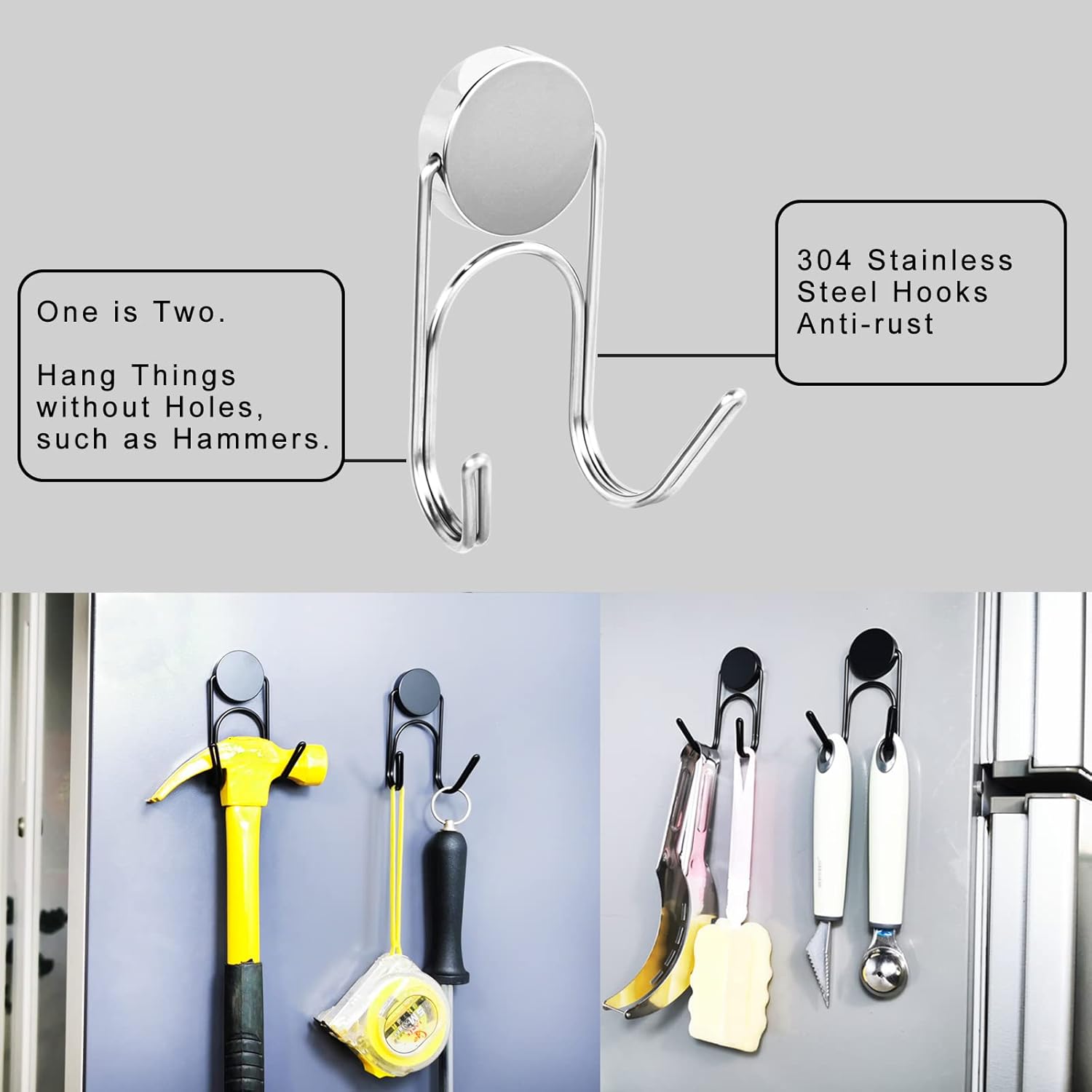 Magnetic Hooks 304 Stainless Steel Hooks Heavy Duty Magnets Hanging Hooks for Refrigerator Grill Toolbox Cabins Outdoor,Cruise Essentials Camper Accessories,4pack(Silver,1.3in-2)