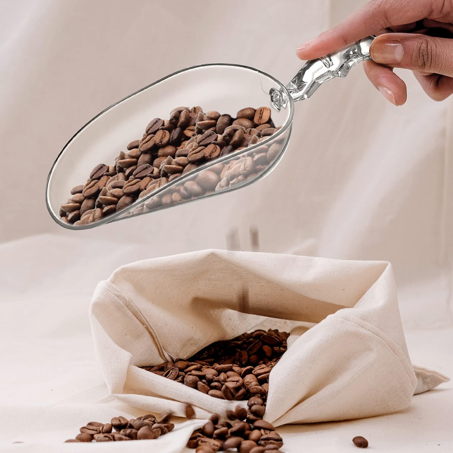 - [MULTIPLE USES] The scoop is good for vairous uses: ice cubes, beans, flour, baking ingredients, cereal, dry goods, pet food, bath salts, and more. A handy tool for your kitchen, bathroom, and laundry room.