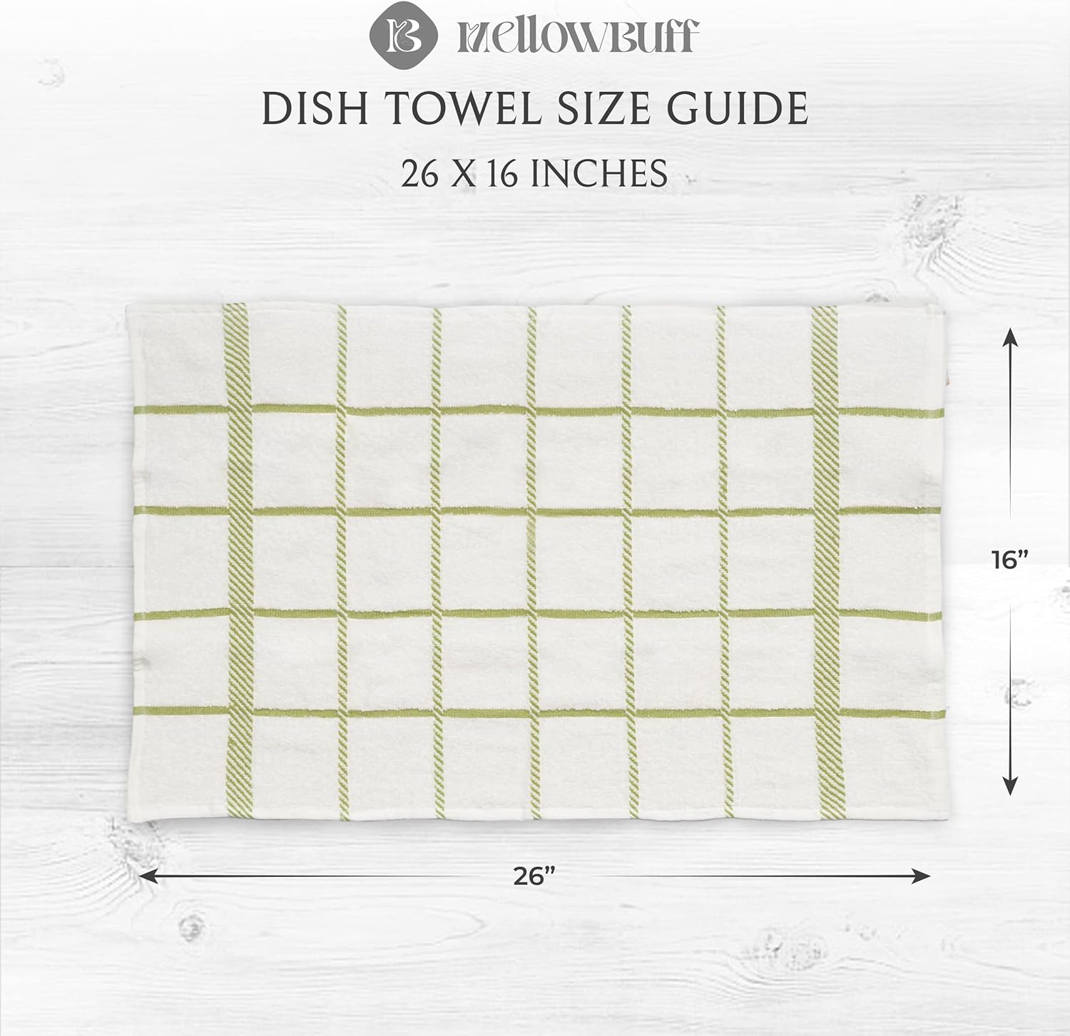 - Mellow buff dishcloths and dishtowels are made of 100% cotton with supreme quality and exquisite workmanship. Designs are simple, perfect size and it will give the feeling of being home by co-ordinating with most kitchen decor.