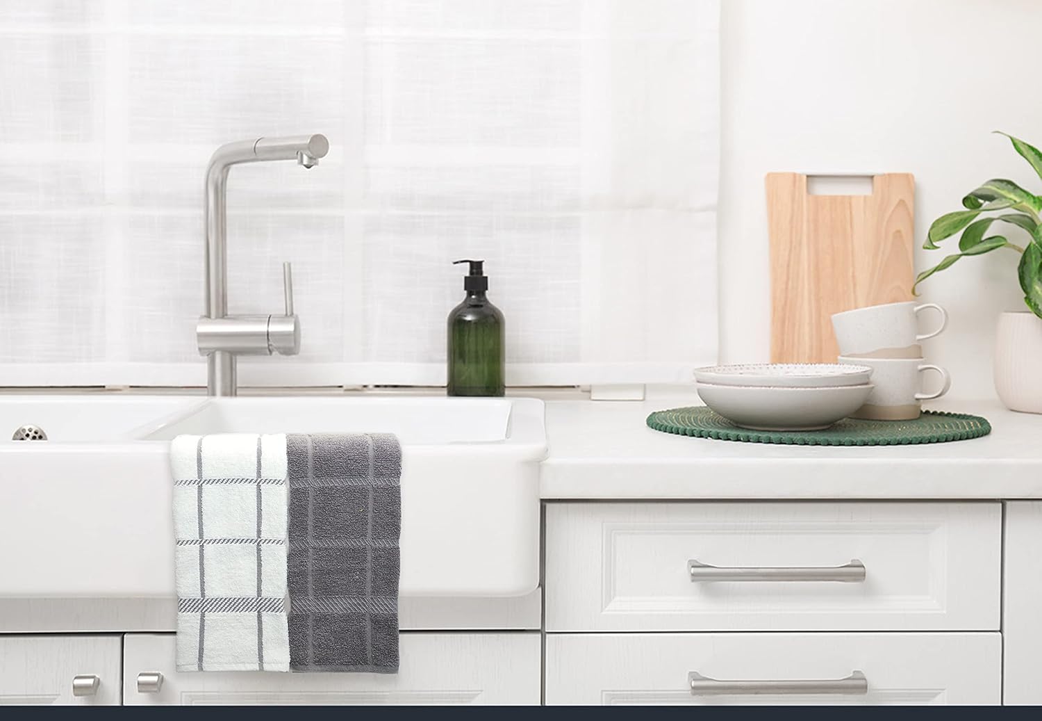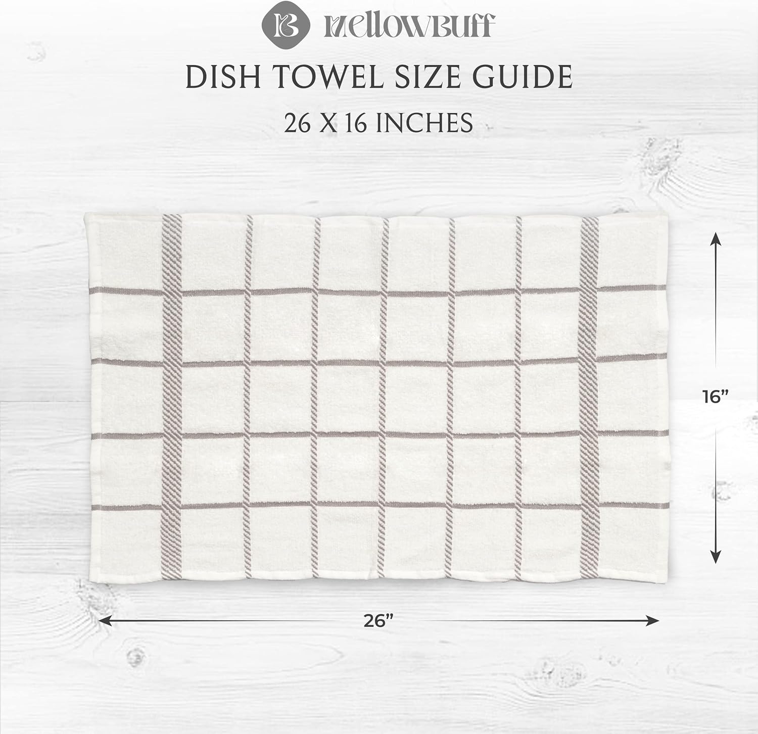 - Mellow buff dishcloths and dishtowels are made of 100% cotton with supreme quality and exquisite workmanship. Designs are simple, perfect size and it will give the feeling of being home by co-ordinating with most kitchen decor.