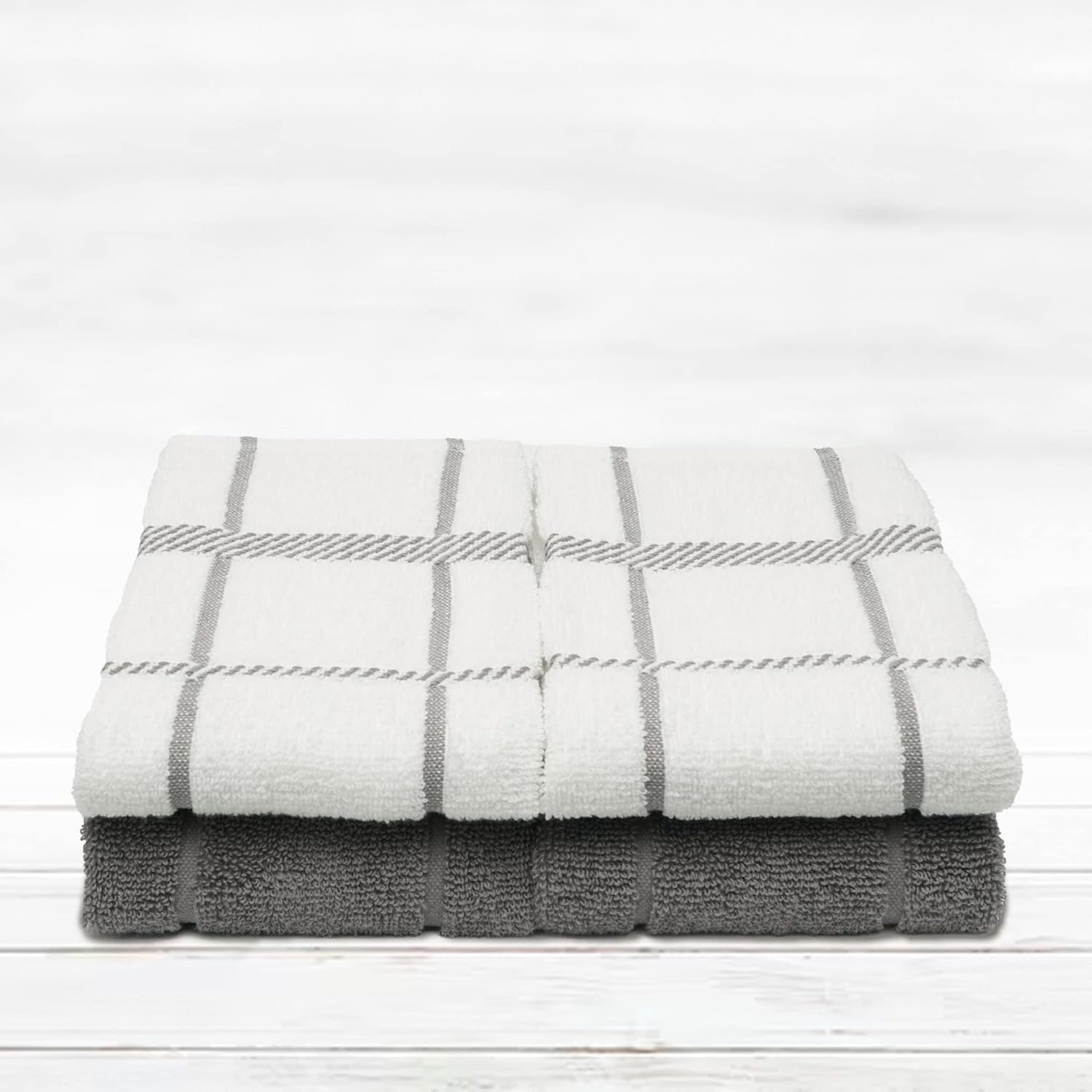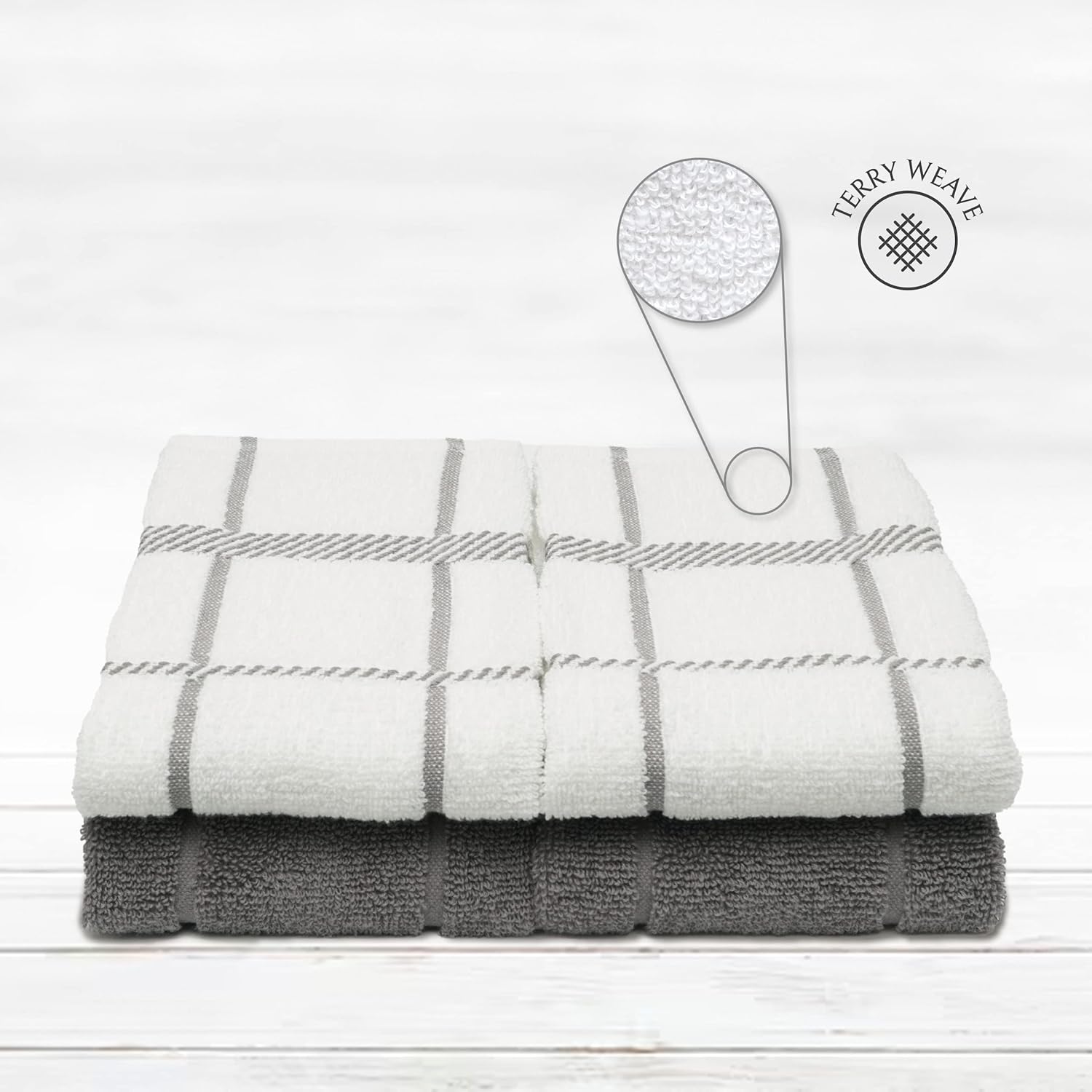 100% Cotton Terry Dish Towels, 4 Pack 16 x26 Inches, Super Soft and Absorbent Kitchen Towels, Perfect for Kitchen Cleaning and Dish Washing | Light Gray