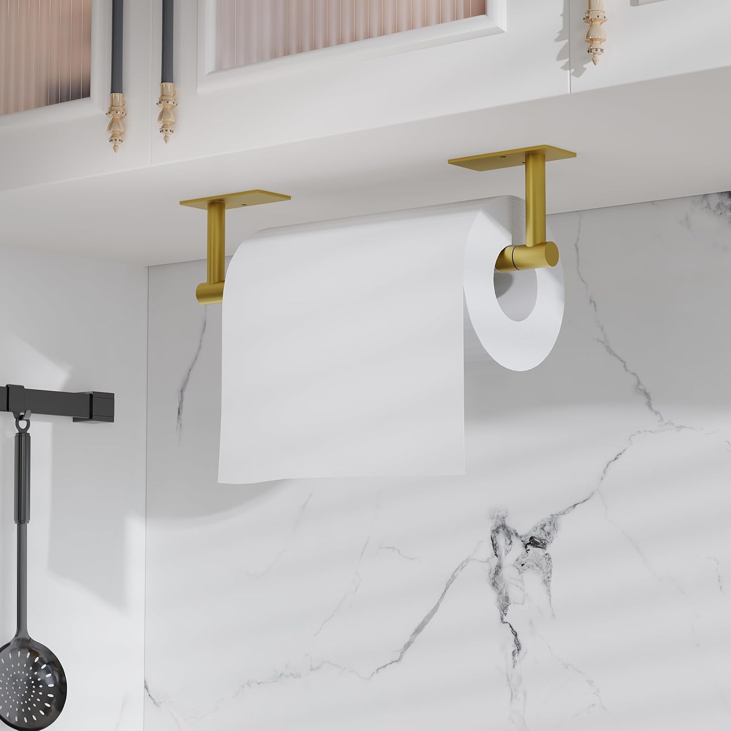 - [Dual Installation] The self-adhesive design of this wall mount paper towel holder makes the product easy to install. High-quality 3M glue firmly fixed the kitchen paper towel holder on the wall. Peel off the protective layer and press self adhesive paper towel holder firmly against the target area for more than 30 seconds. Wait 24 hours to ensure a better bonding effect