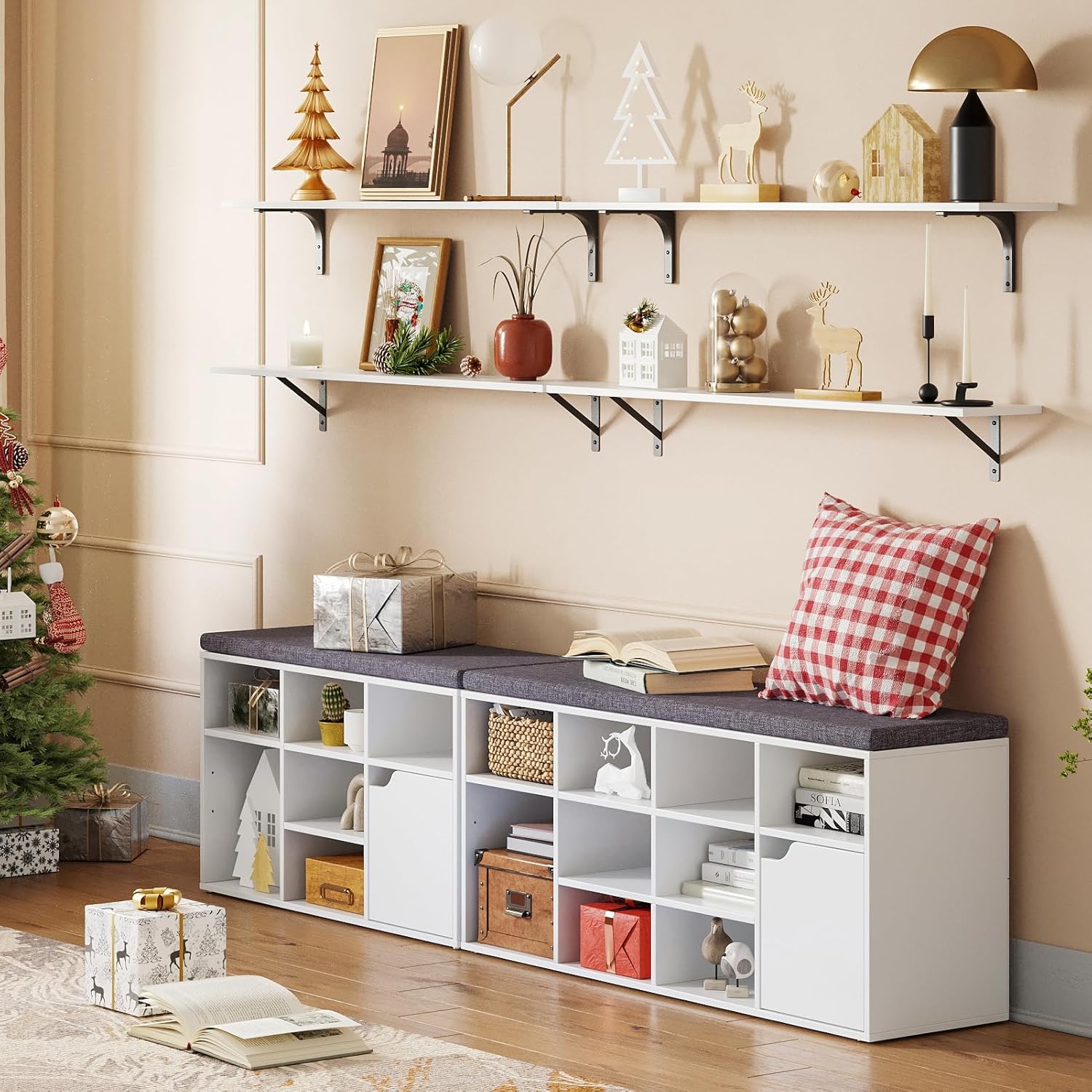 - 【Wide Application】Extra long shelves for wall storage is gospel of small family to enjoy the tranquility of home. Large floating shelves allow you to store books, games, decorations, plants, towels, photos, collectibles etc. Even to be an ideal play area for your cats. Create additional storage in living room, bathroom, bedroom, closet, balcony, study, kitchen, laundry, bar area, pantry and office