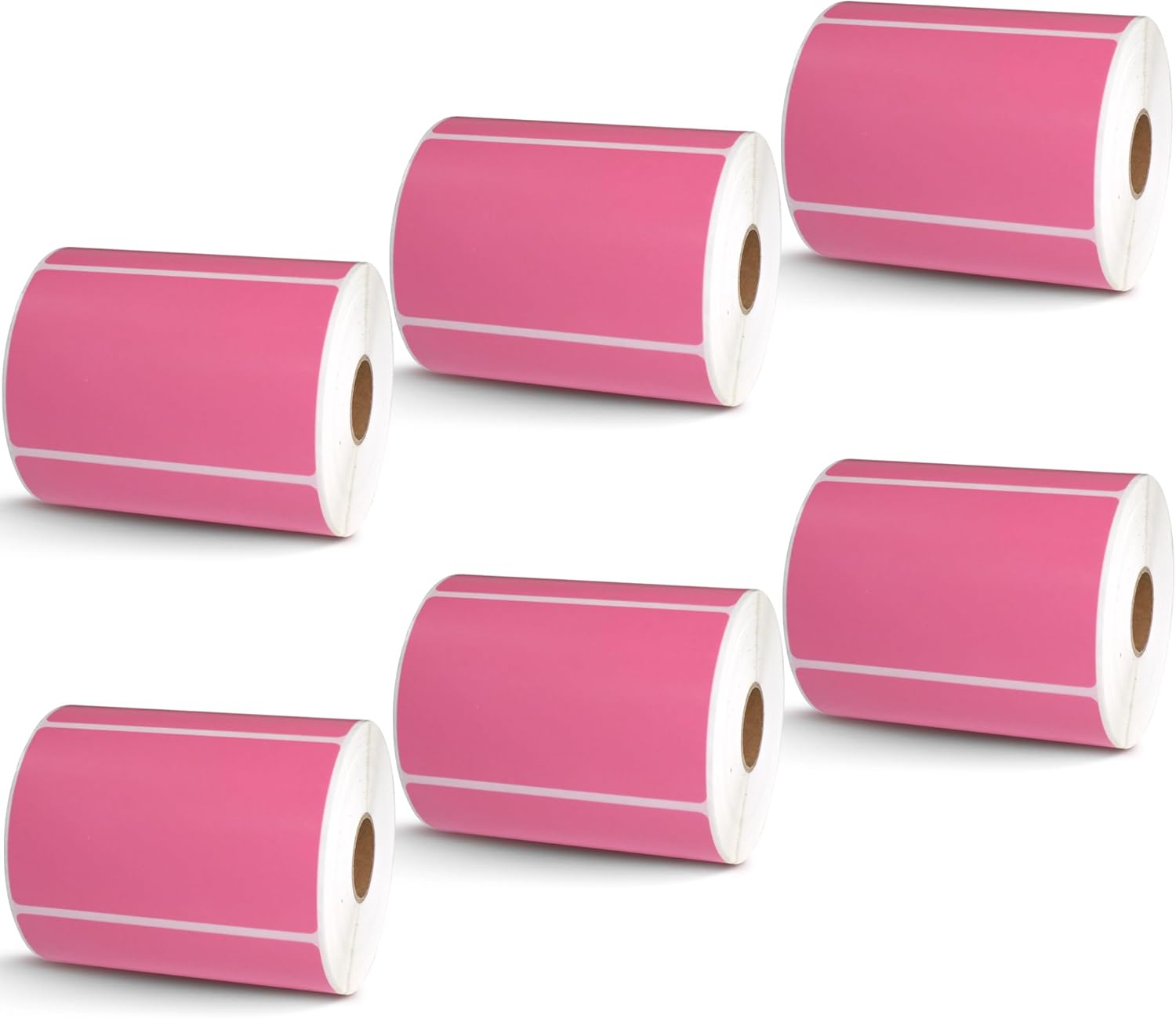 BETCKEY - 4" x 2.5" Shipping & Multipurpose Labels Compatible with Zebra & Rollo Label Printer,Premium Adhesive & Perforated[Pink, 6 Rolls, 3720 Labels]