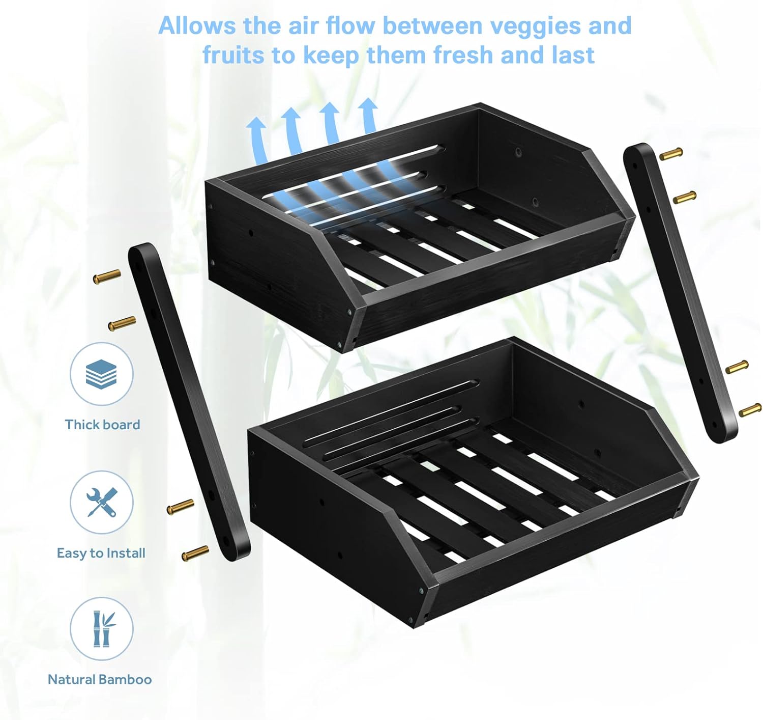 - Easy to Clean and Assemble: With detailed installation instructions and videos, our bamboo produce holder is easy to assemble. It is also easy to maintain and clean, simply wipe it down with a damp cloth and mild soap and water.