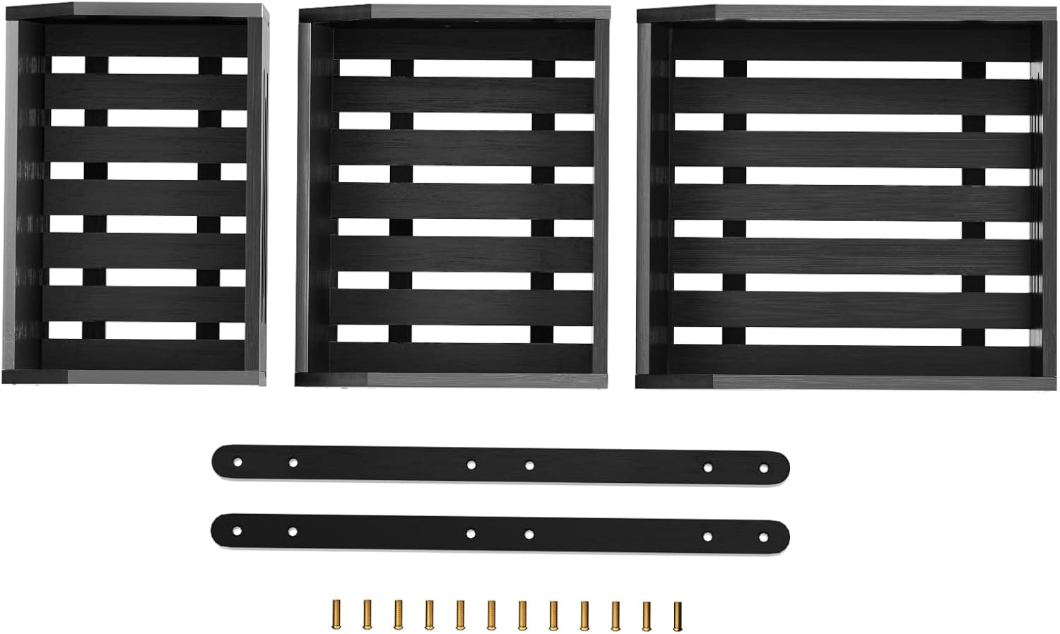 G.a HOMEFAVOR Large Bamboo Fruit Basket, 3 Tier Fruit Bowl for Kitchen Counter, Fruit Holder for Kitchen Countertop, Snack Fruit Vegetable Storage Basket Stand (BLACK)