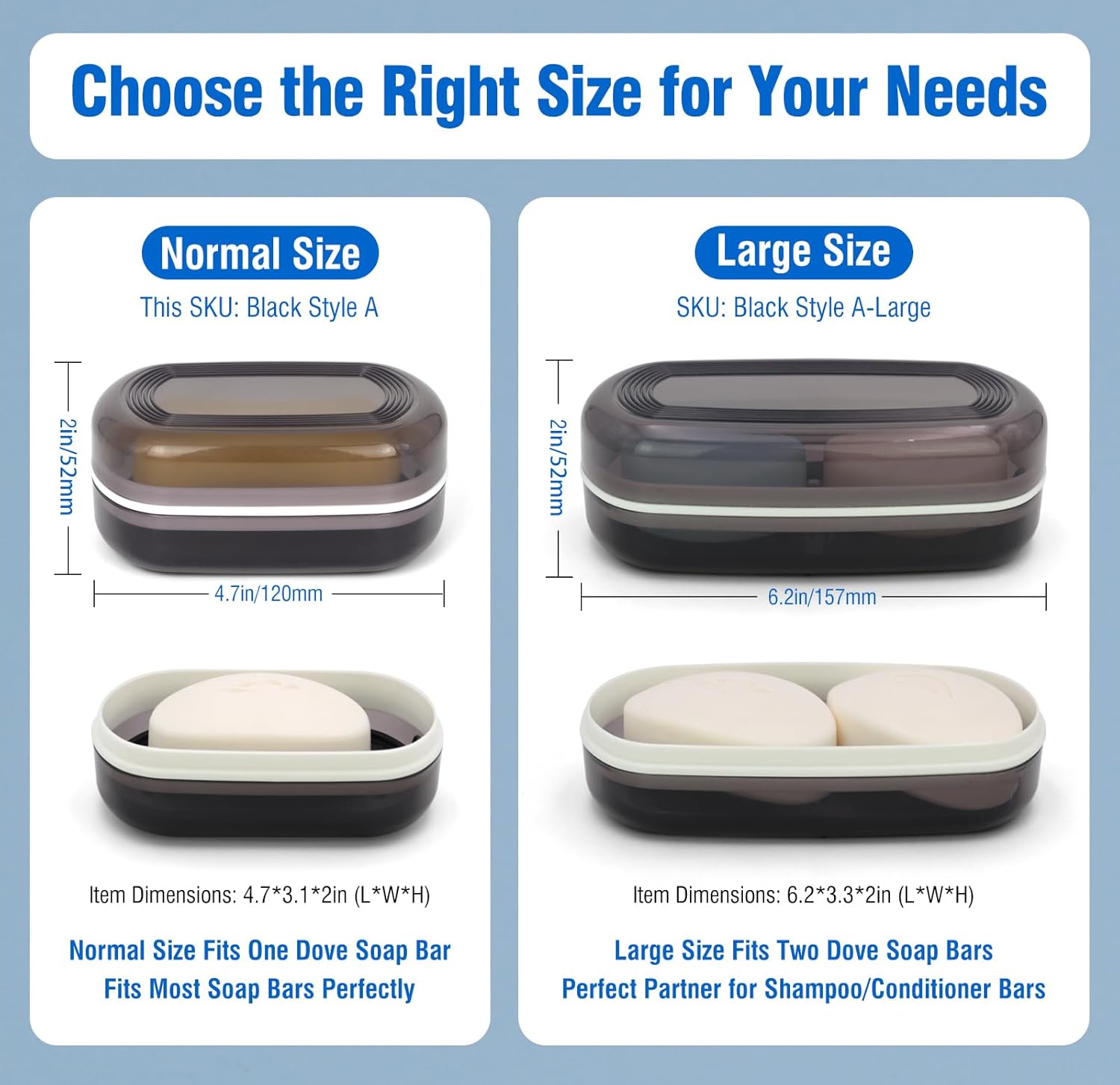 - Perfect Size: The bar soap container measures 4.7" x 3.1" x 2" and fits most bar soaps on the market.