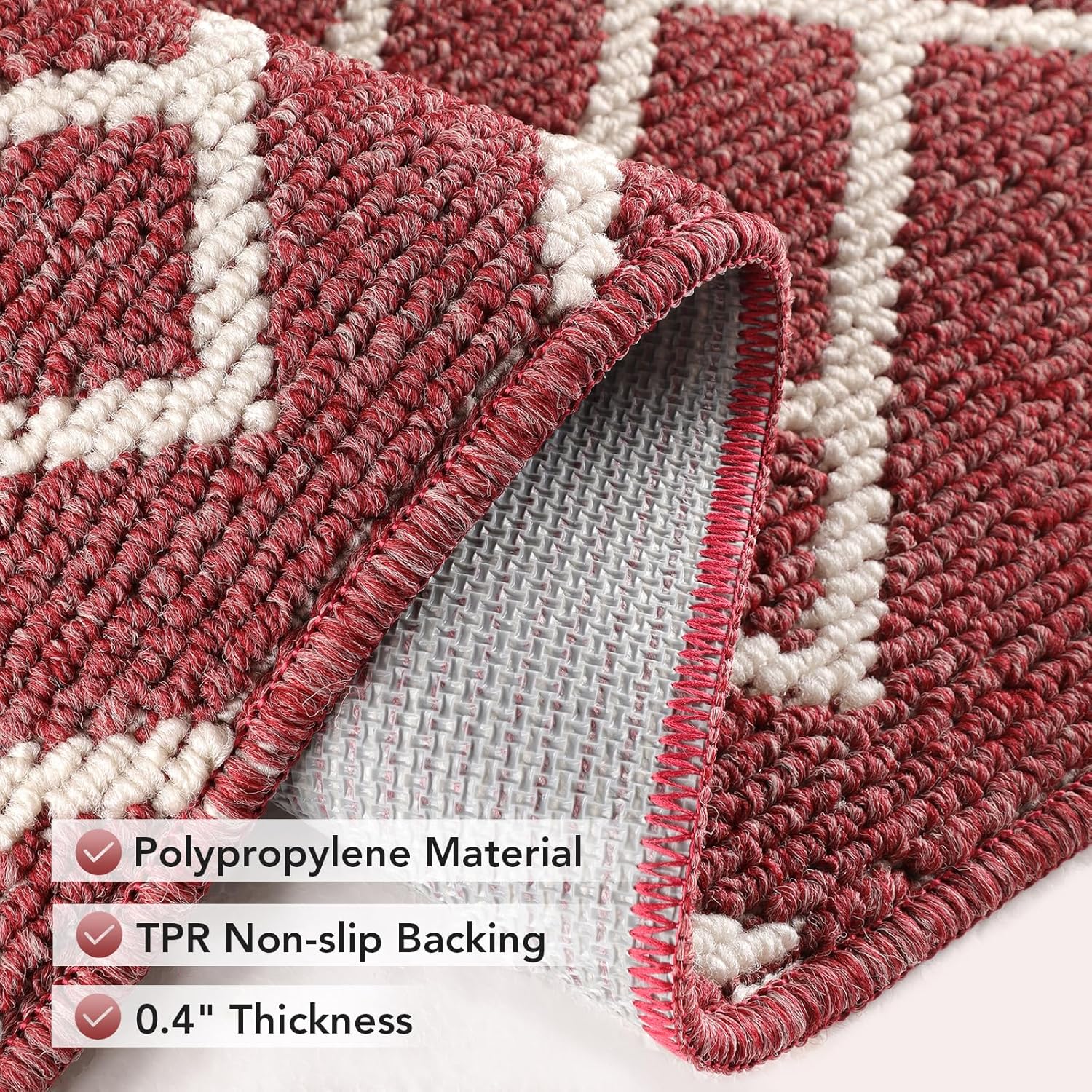 - NON-SLIP BACKING: High quality TPR backing to keep the kitchen mat firmly in place and prevent shifting and skidding. Provide better security for families with children or the elder. Attention: The kitchen rug underlay should be clean, flat, and dry before placing the mat on the floor. Water or dust under mat may cause slippage.