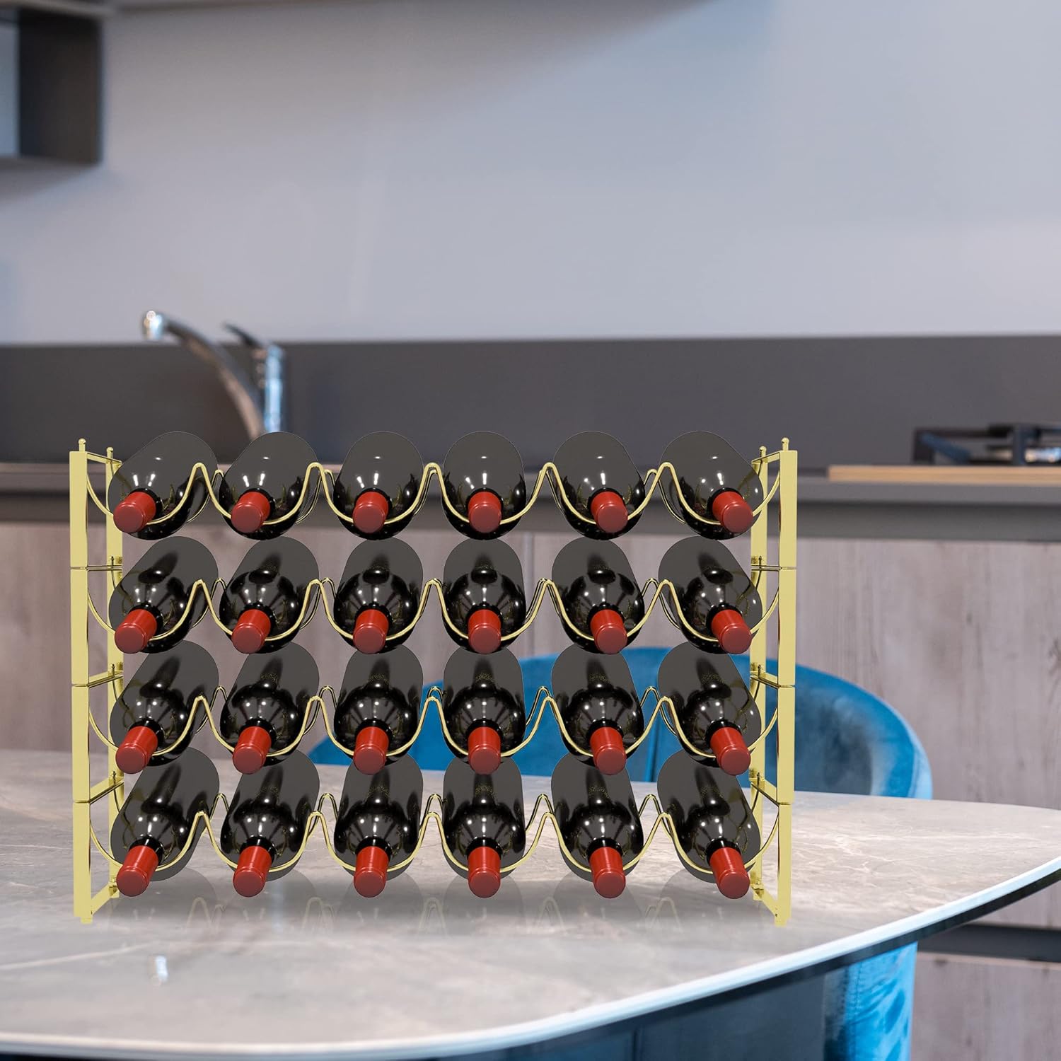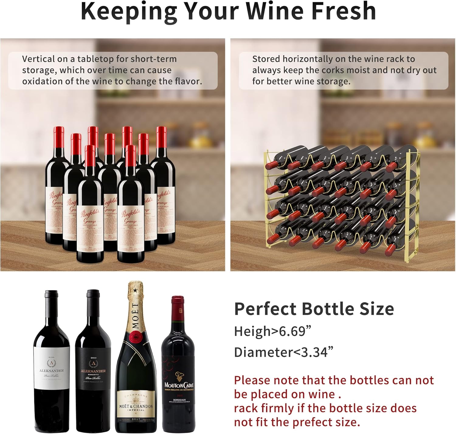 - 【Large Capacity】Size: 24.9''L x 6.7''W x 16.5 ''H, this countertop wine rack can hold up to 24 standard wine bottles. Also the horizontal storage method ensures that the wine is in contact with the cork, keeping the cork moist and allowing the wine to be stored for longer until you are ready to enjoy it.