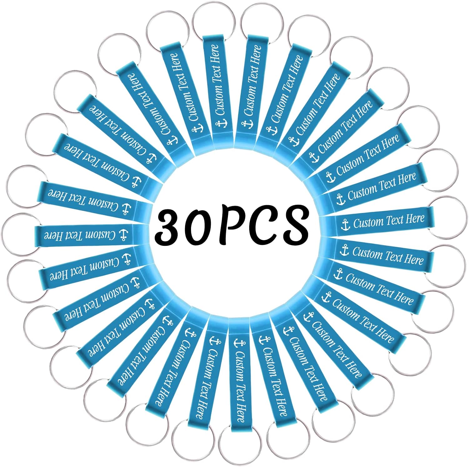 30PCS Personalized Bottle Opener Keychain Bulk Custom Beer Bottle Opener with Logo Text Engraved Wedding Bottle Opener Favors Customized Gifts for Guests Baby Shower Birthday Party-Sky Blue