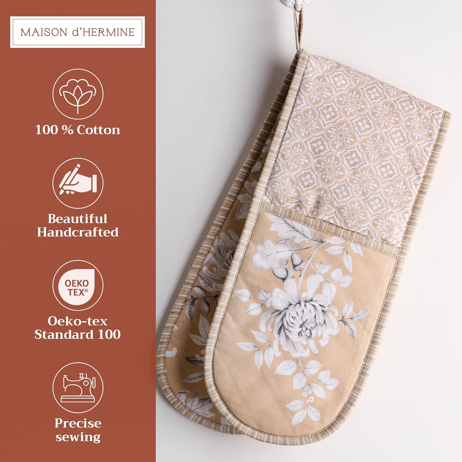 Maison d' Hermine Double Oven Mitts 100% Cotton 7"x35" Double Oven Mitt Heat Resistant BBQ Cooking Gloves with Loop, Baking, Grilling, Home, Kitchen, Handling Hot Pans (Pretty Autumn)