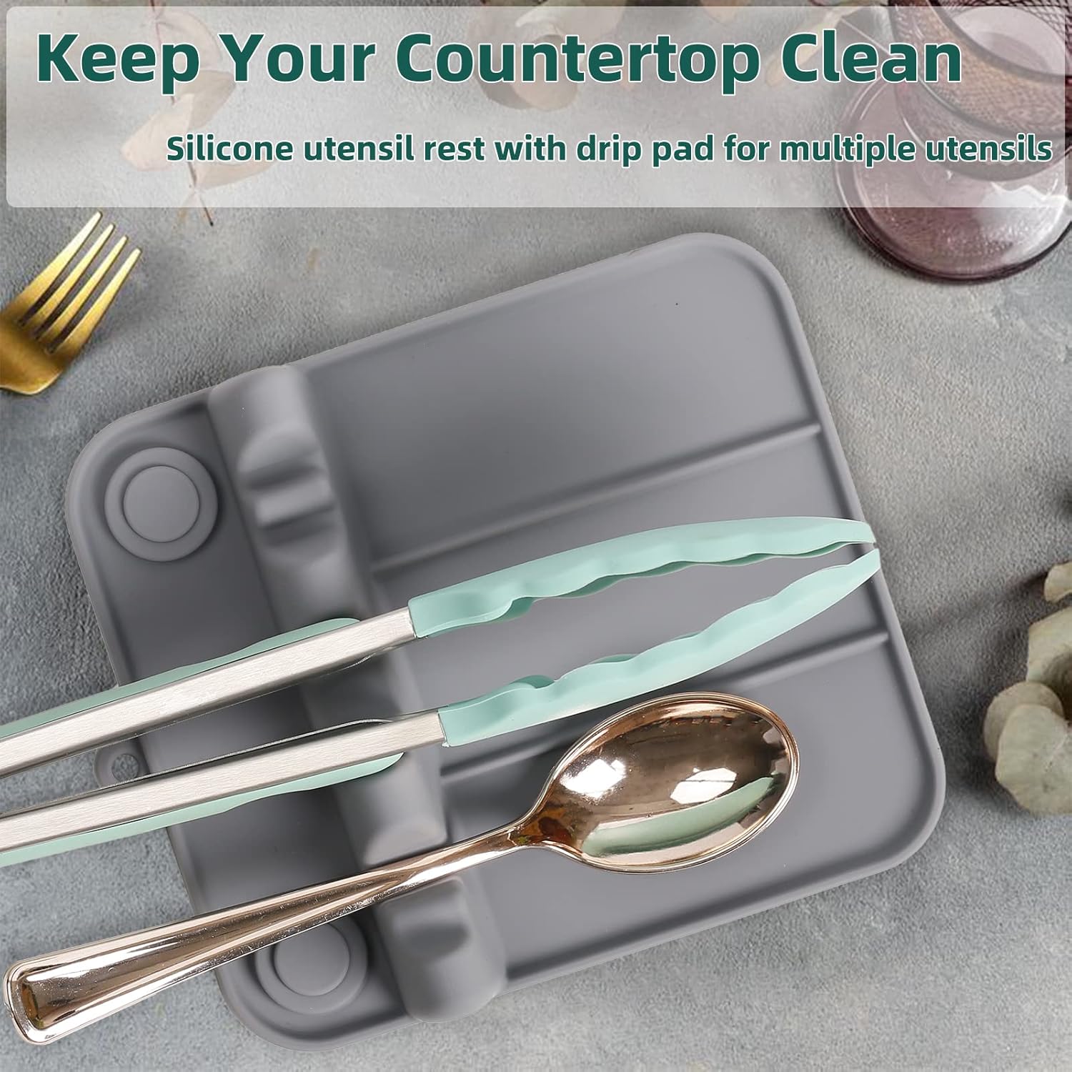 - 【UPGRADED REST GROOVES, MULTIPLE USES】Based on the original, this Silicone Spoon Rest has three newly designed grooves. Not only can be used as a spoon rest for stove or a kitchen utensil holder for whisk/colander/kitchen tongs/brush/pasta fork/skimmer, but can be taken out as a lightweight rest for barbecue clips. From the most common usage of our customers, it is more like an exquisite and simple spatula holder, ladle rest and coffee spoon rest.
