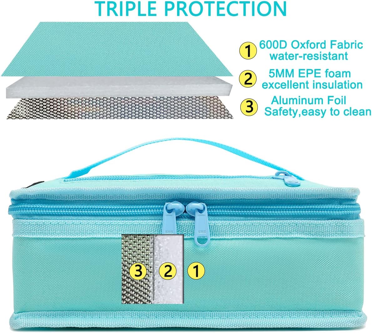 - ✿ Portable:Handle and could easy put into backpack or large handbag.Soft grip handles of Lunchbox is designed for convenient carrying, inner mesh pocket can separately stores ice pack and tableware. Easy to clean and dry, just wipe it with a wet cloth.
