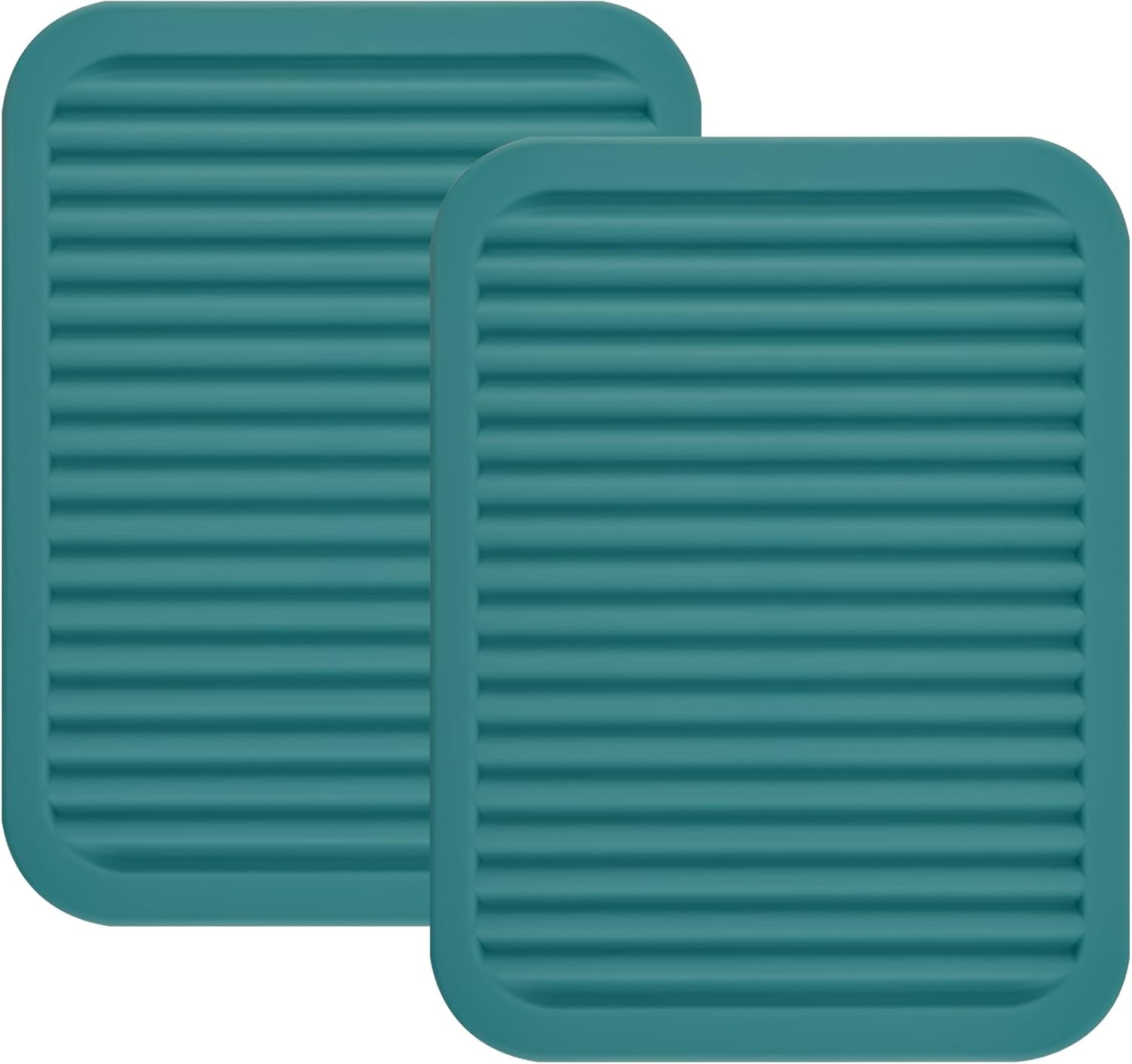 Silicone Trivet Mat-Trivets for Hot Pots&Pans-Hot Pads for Kitchen-Versatile Trivets for Hot Dishes-Heat Resistant Mats for Counter&Table, Silicone Pot Holders Drying Mat (9x12) Pack 2 Teal