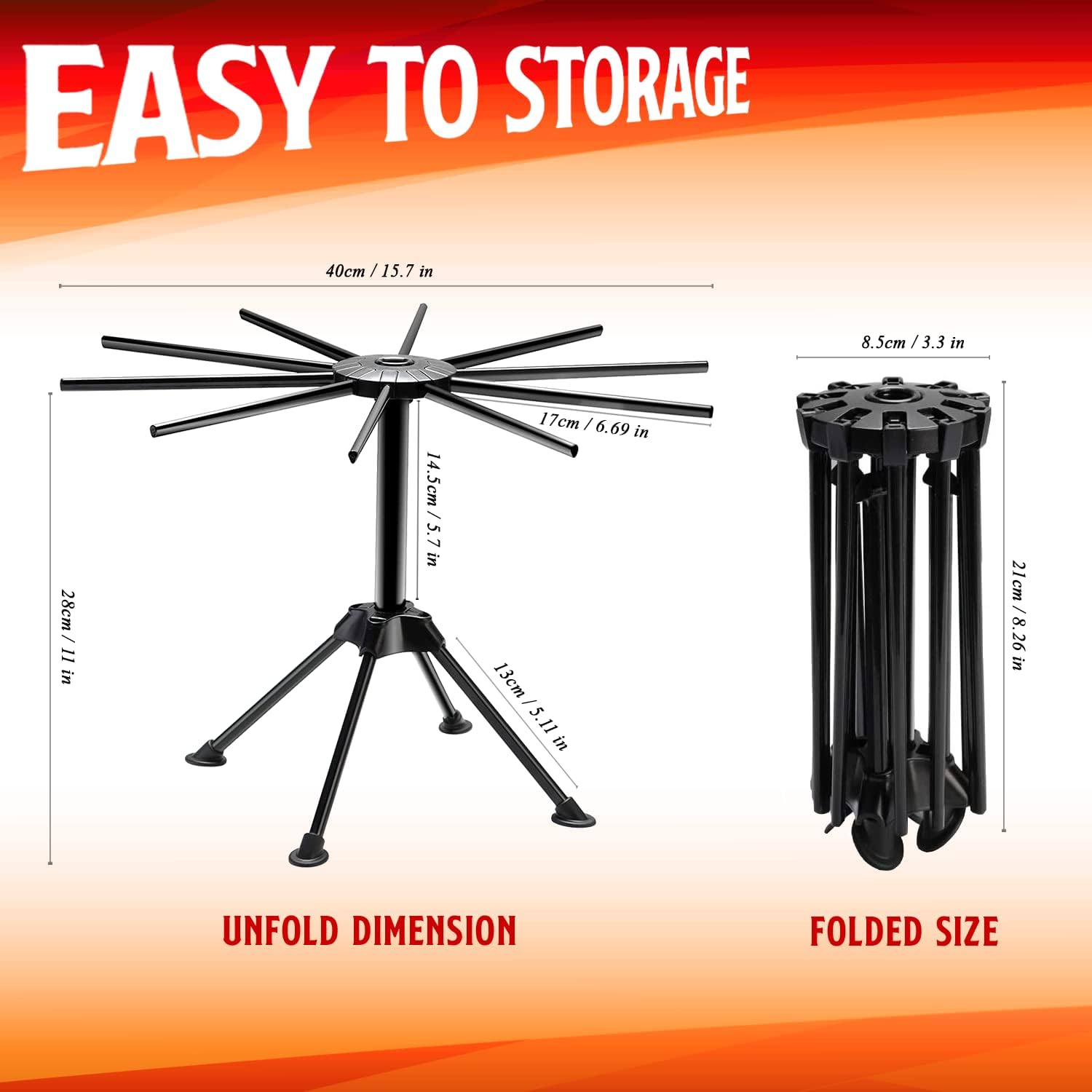 - COMPACT DESIGN: The spaghetti dryer stand is ultra-compact and is collapsible so you can easily store it when you’re not drying pasta. The pasta dry holder is incredibly easy to assemble and disassemble, and its compact size makes it ideal for your kitchen countertop or your kitchen table.