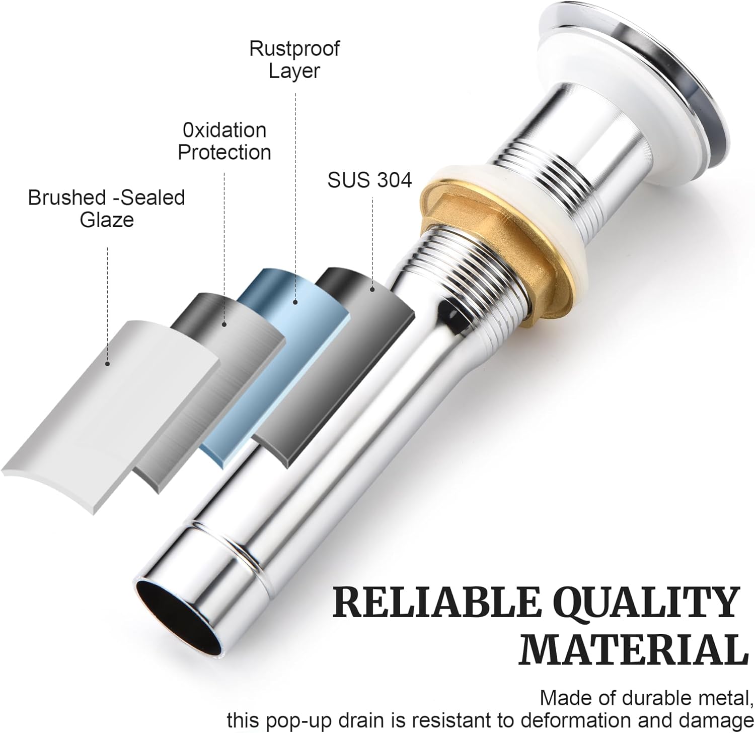 Pop up Sink Drain Stopper for Bathroom Vessel Vanity Sink Art Basin Chrome, Big Cap Without Overflow, Metal Pop-up Drain Strainer with Detachable Basket Stopper