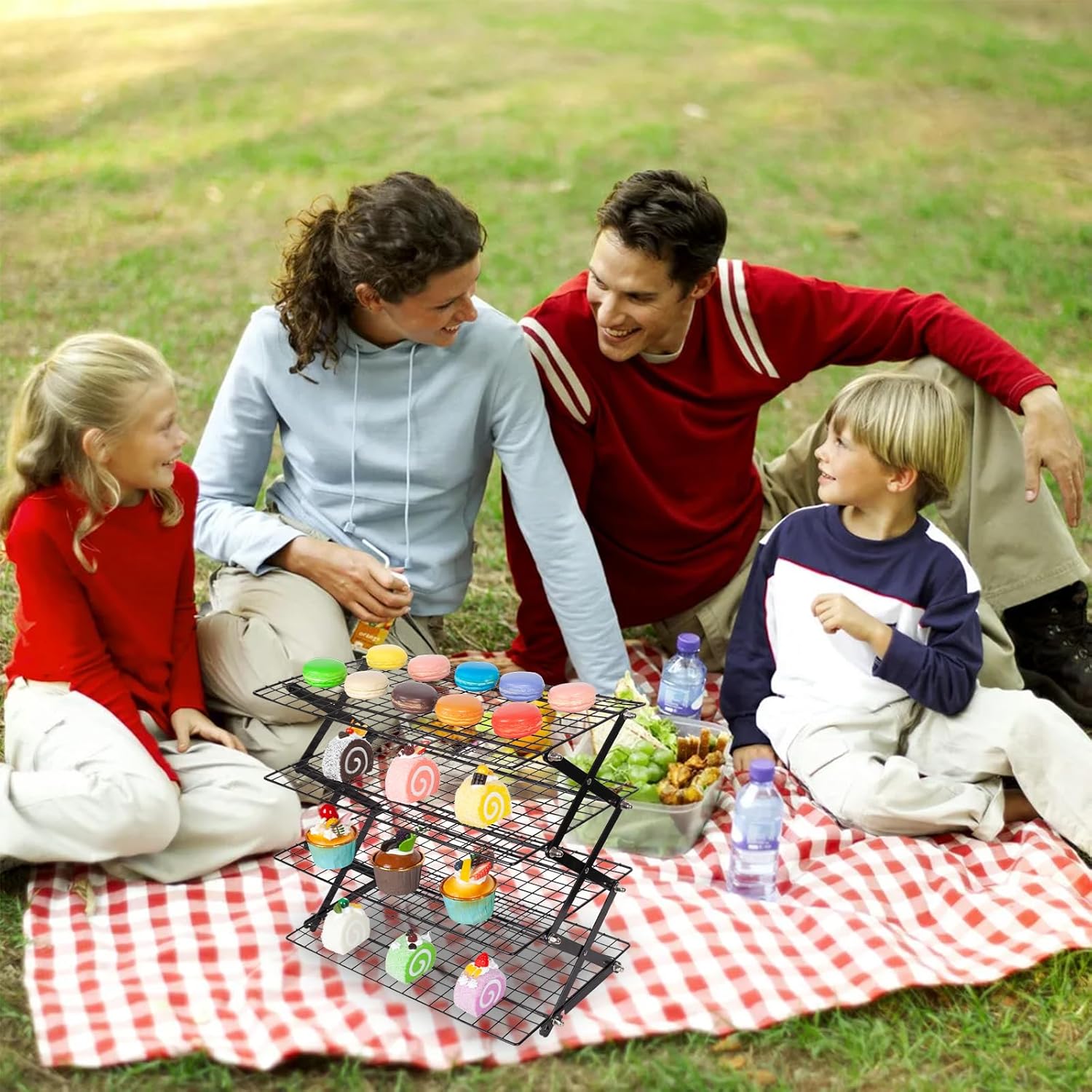 ShellKingdom 4 Tier Collapsible Cooling Rack, Outdoor Camping Picnic Shelf, Wire Cooling Rack for Baking, Cookies, Cake, Roasting, Grilling, Drying Rack - Black