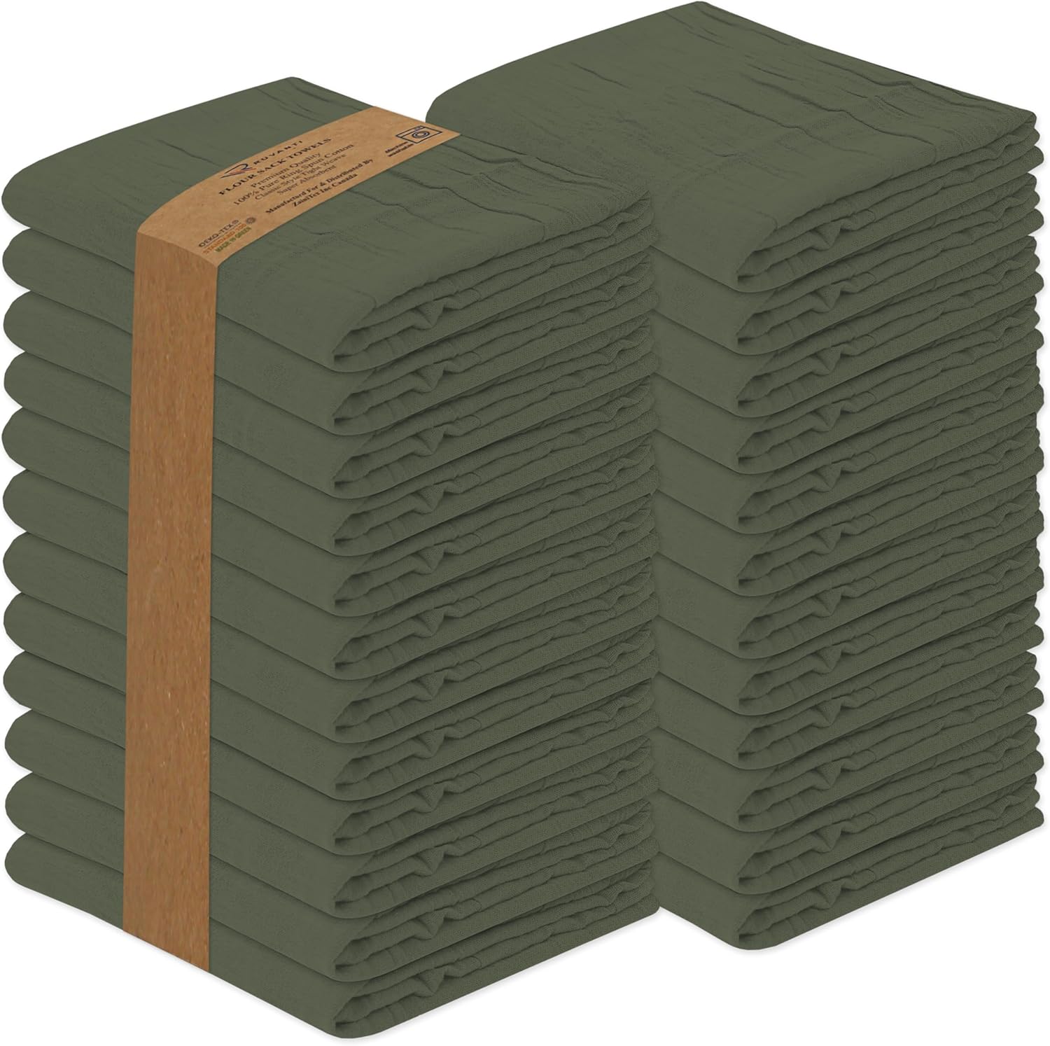 RUVANTI Flour Sack Towels 36 Pack 28x28 Inch, 100% Cotton Tea Towel, Reusable, Machine Washable, Absorbent BarTowels - Dish Cloth Perfect for Drying Dishes & Cleaning - Martini Olive