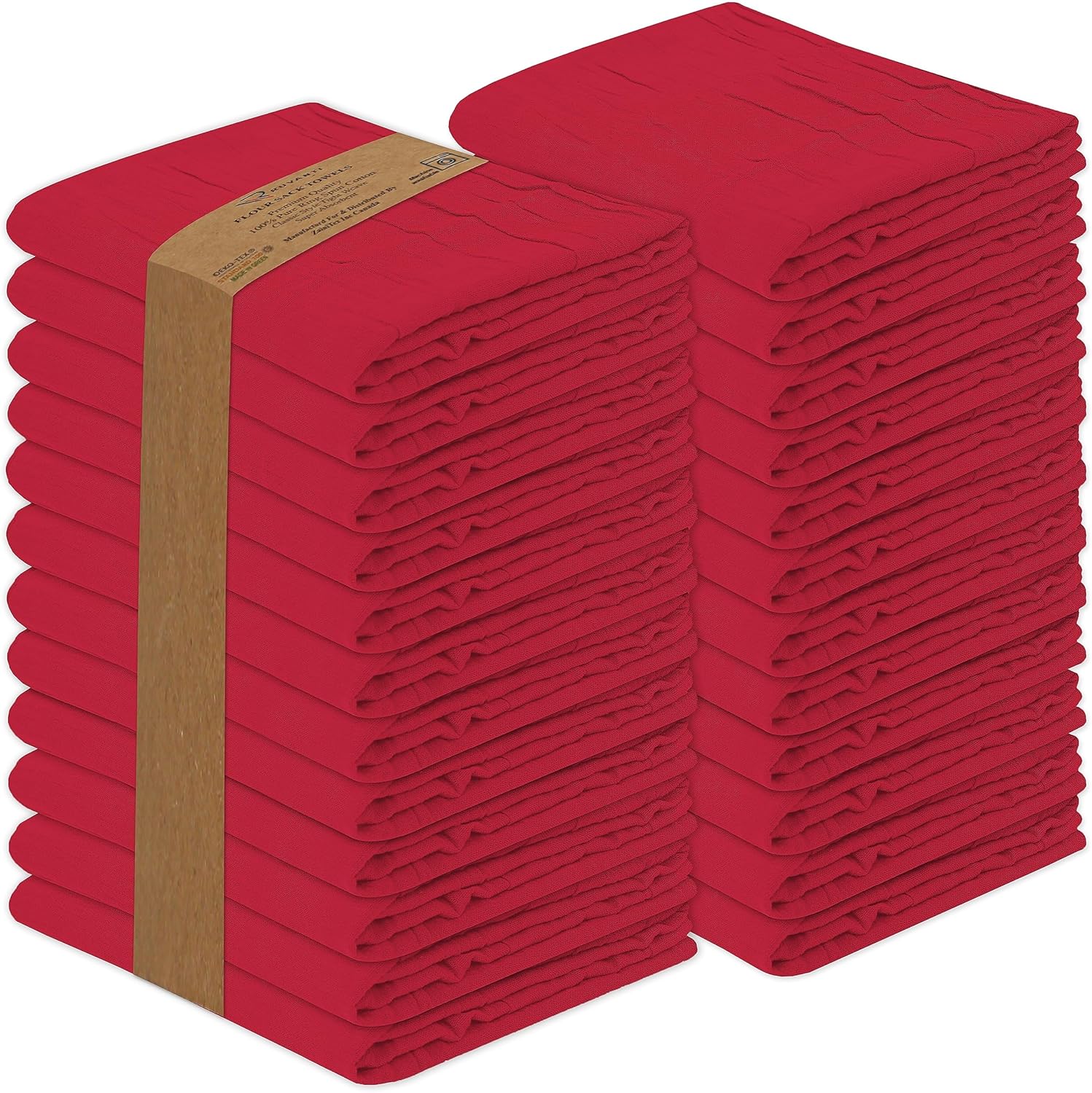 RUVANTI Flour Sack Towels 24 Pack 28x28 Inch, 100% Cotton Tea Towel, Reusable, Machine Washable, Absorbent BarTowels - Dish Cloth Perfect for Drying Dishes & Cleaning - Red