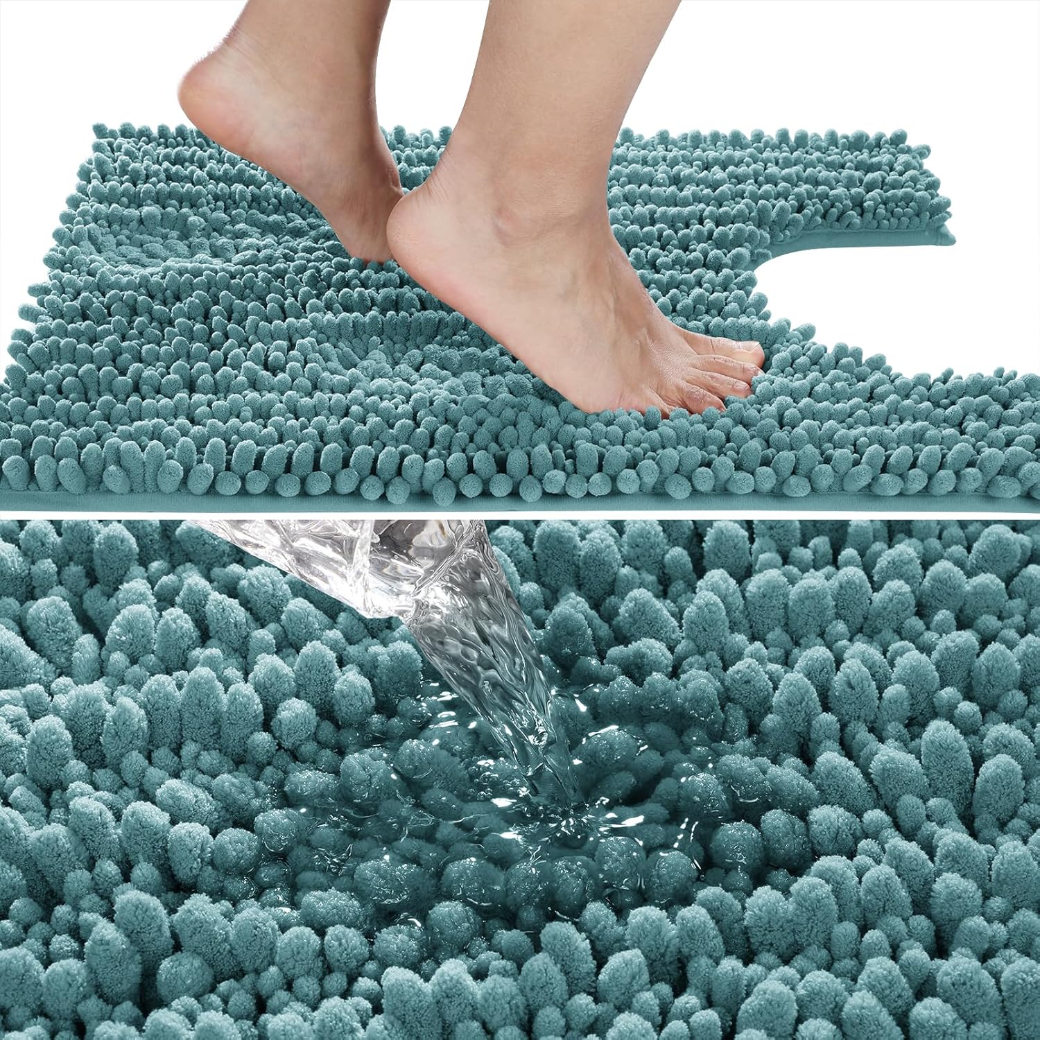 Yimobra Toilet Rug U Shaped Washable 24x20 Inch - Ultra Soft Absorbent Chenille Bath Rugs for Toilet, Quick Dry & Machine Washable, Non Slip Contour Bathroom Mat, Teal Blue