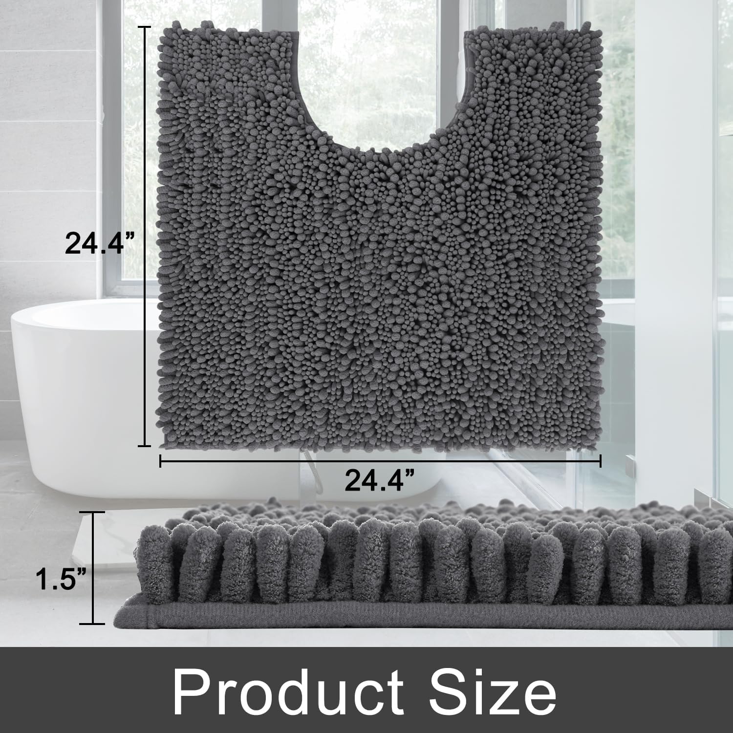 Yimobra Toilet Rug U Shaped Washable 24x20 Inch - Ultra Soft Absorbent Chenille Bath Rugs for Toilet, Quick Dry & Machine Washable, Non Slip Contour Bathroom Mat, Dark Gray