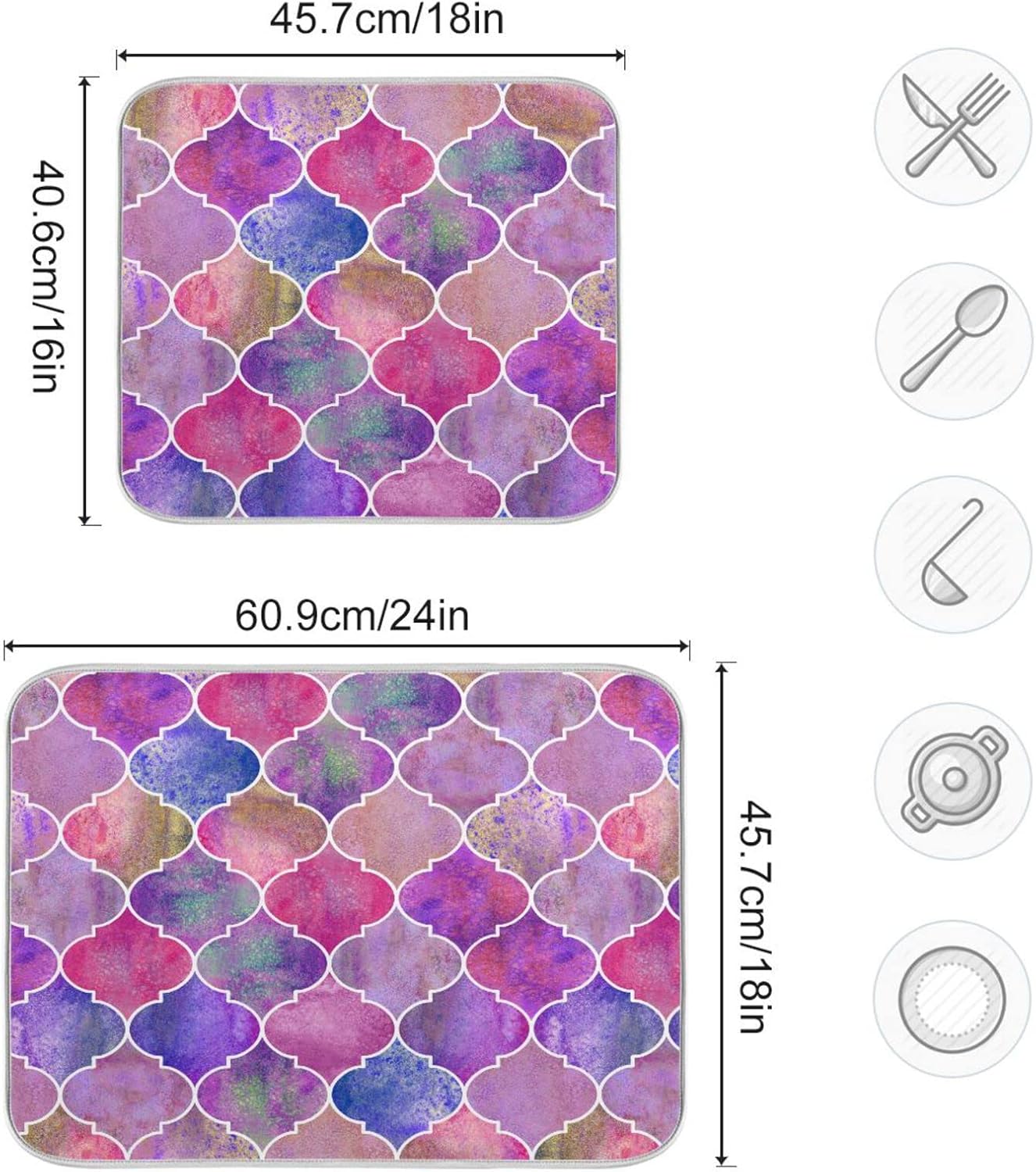 senya Super Absorbent Dish Drying Mat, Microfiber Fast-Drying Dish Mat, 16'' x 18'', Kitchen Dish Drying Pad, Vintage Decorative Moroccan,16x18in
