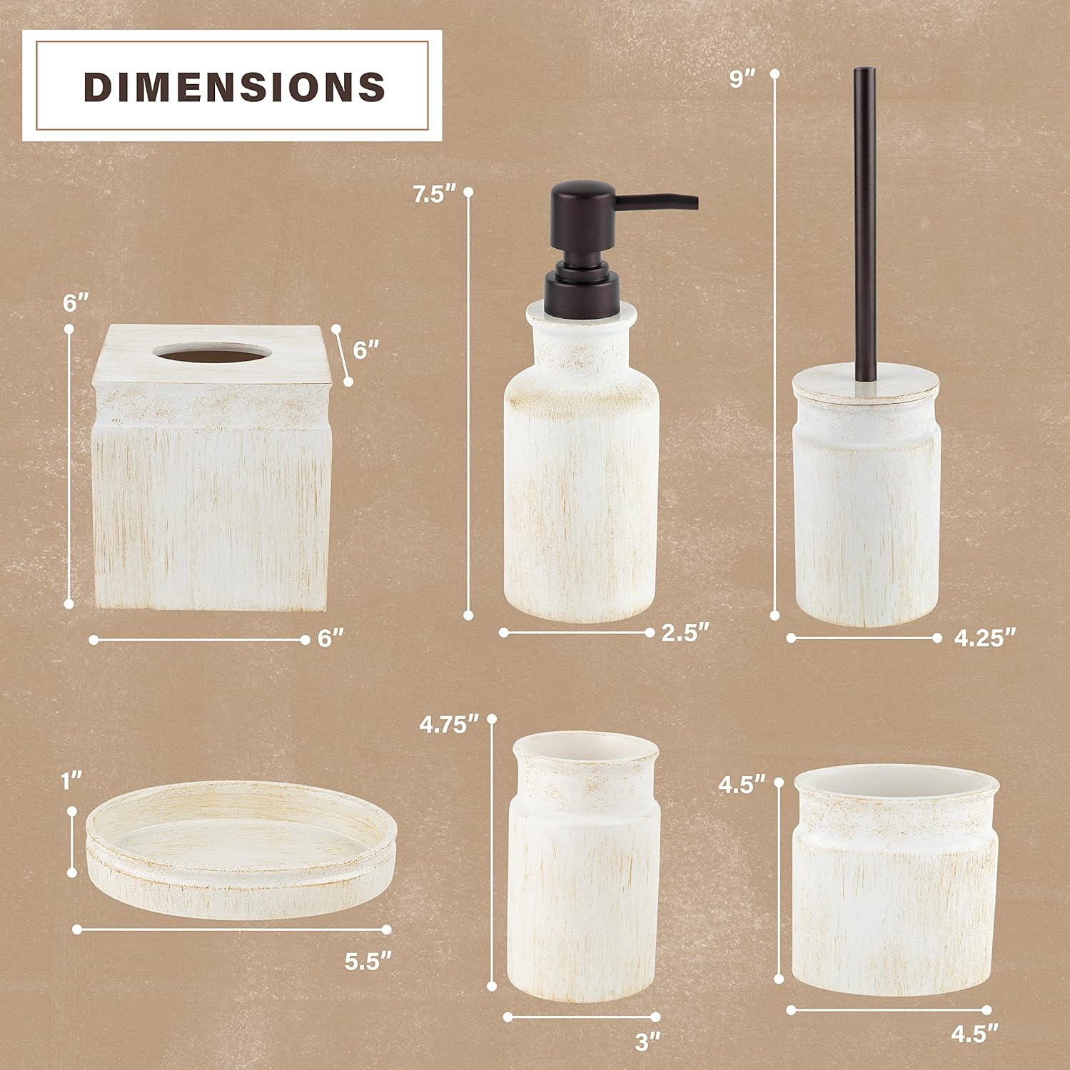 Creative Scents Rustic Luxe Bathroom Accessory Set - 6 Piece Modern Bathroom Sets Accessories Features: Toilet Brush and Holder, Tissue Cover, Soap Dispenser, Toothbrush Holder, Soap Dish & Tumbler