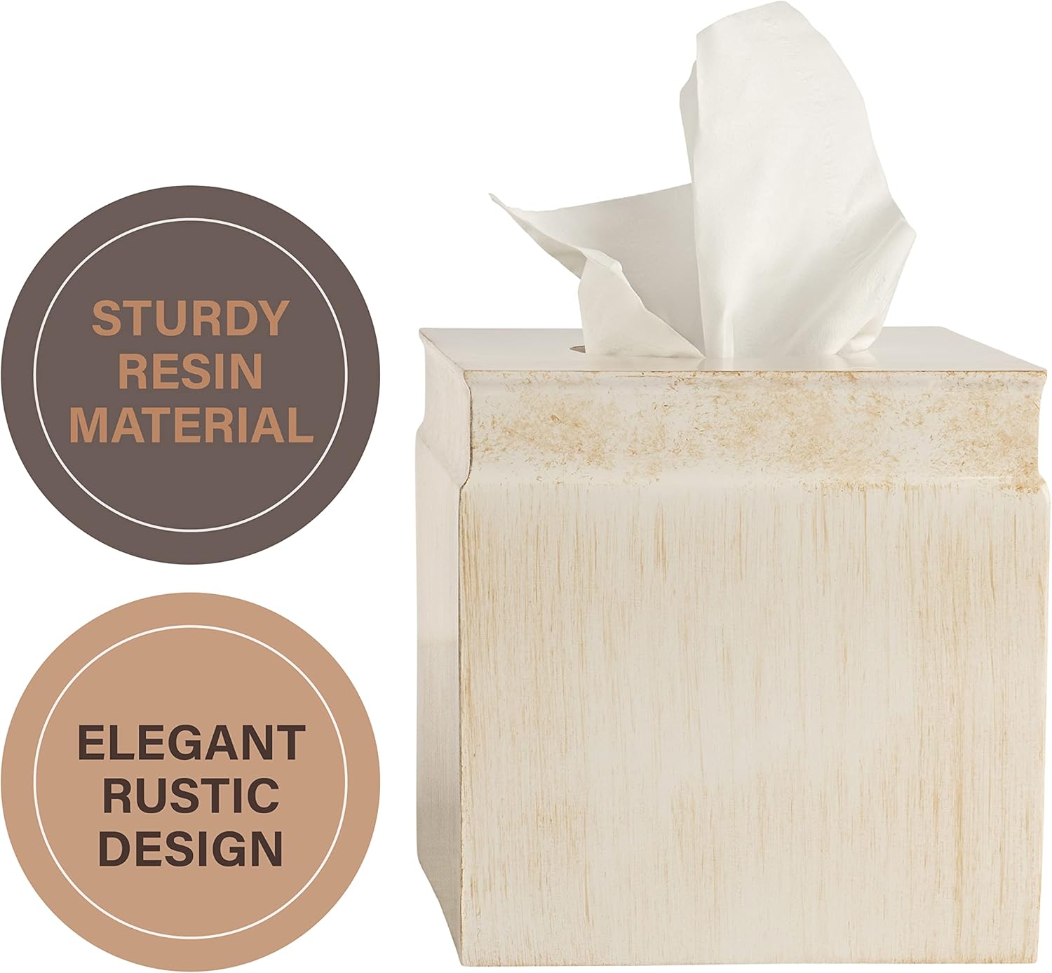 - Complete The Set: Bundle this tissues cube box holder with other bathroom accessories from our Rustic Luxe collection and make a statement.