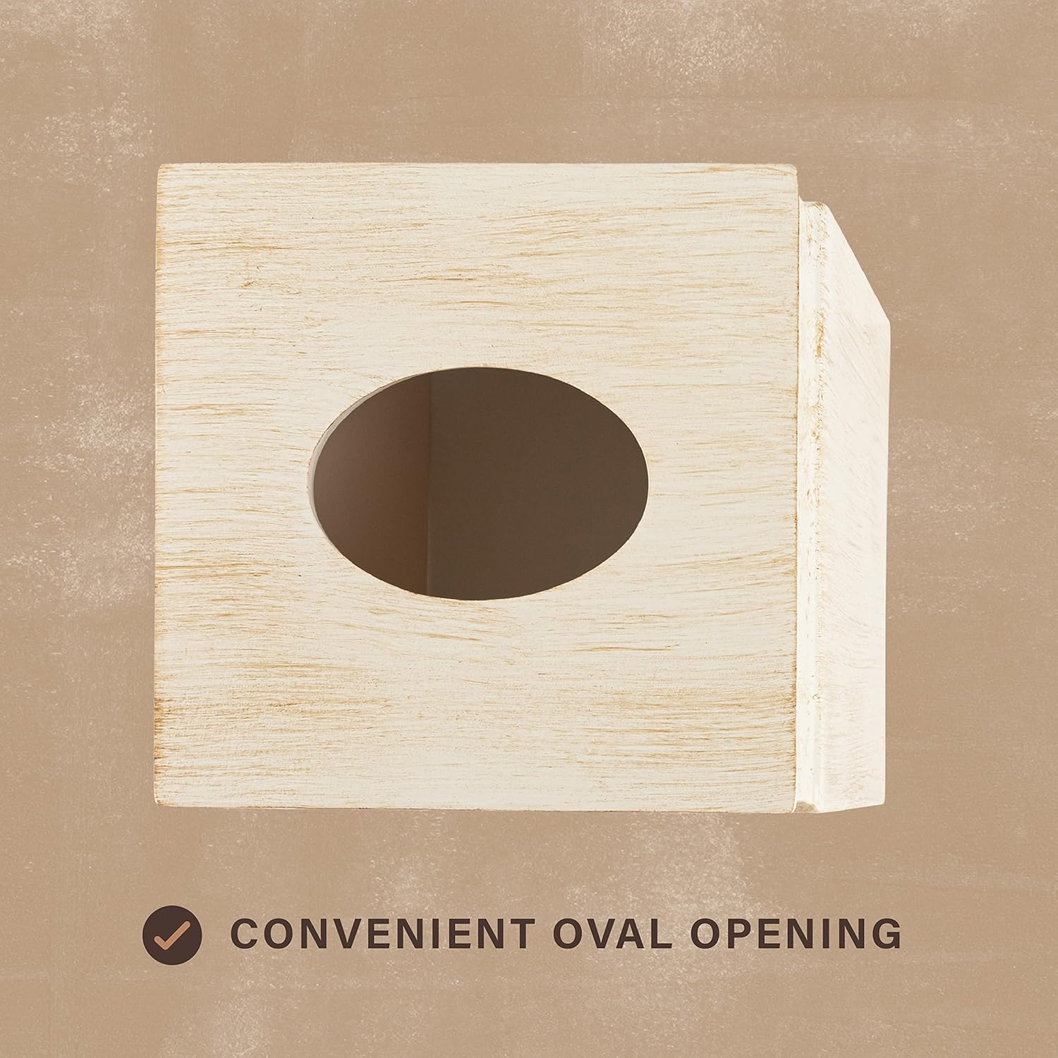 Creative Scents Rustic Luxe Tissue Box Cover Square – Beige Tissue Box Holder Square with Oval Opening for Easy Access - Tissue Holder with Modern Rustic Design Fits Any Farmhouse Bathroom Decor