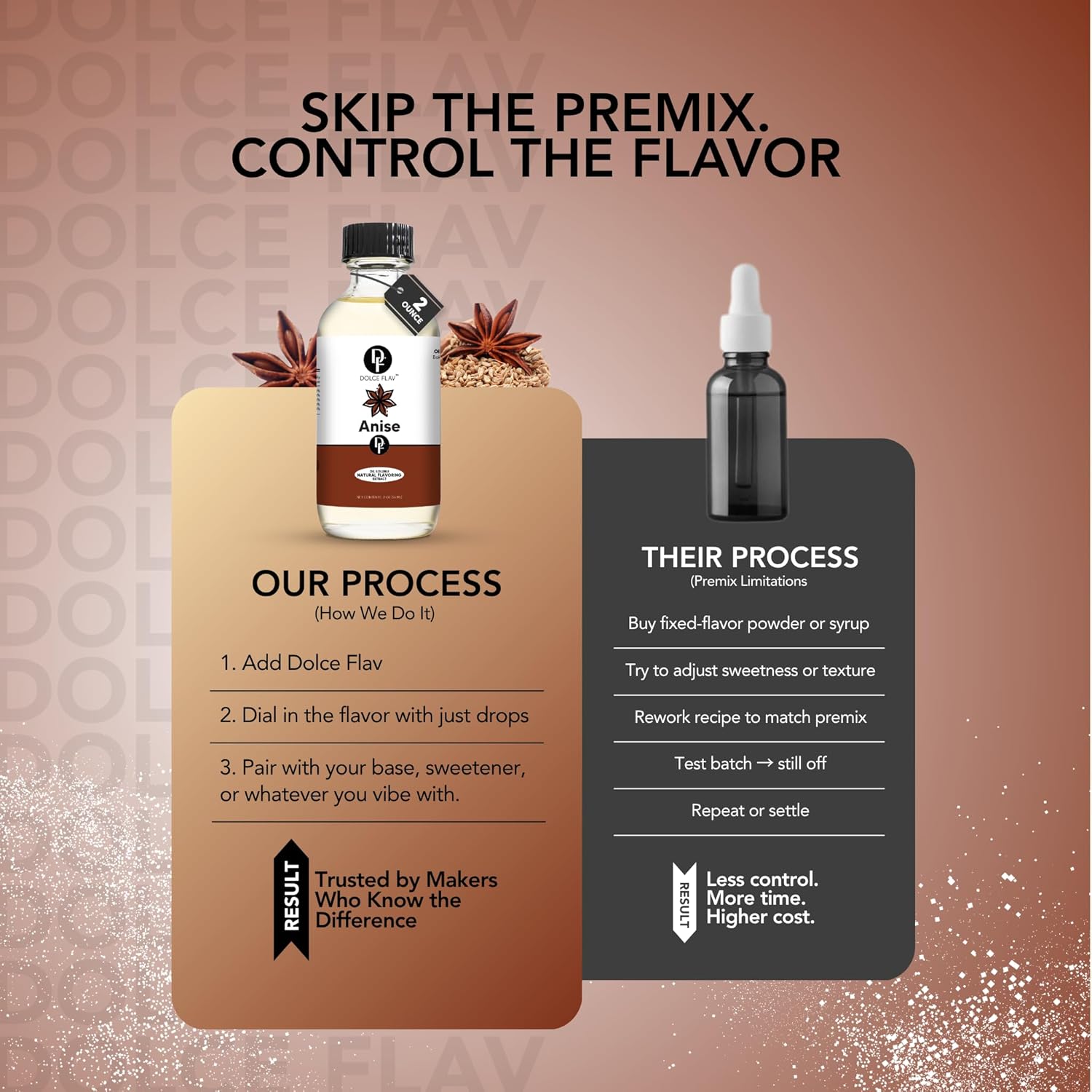 - Mastering Anise Desserts: Create delectable treats with our anise concentrate. Ideal for crafting full-bodied anise frosting and flavor-packed baked goods, it's a game-changer for dessert enthusiasts.