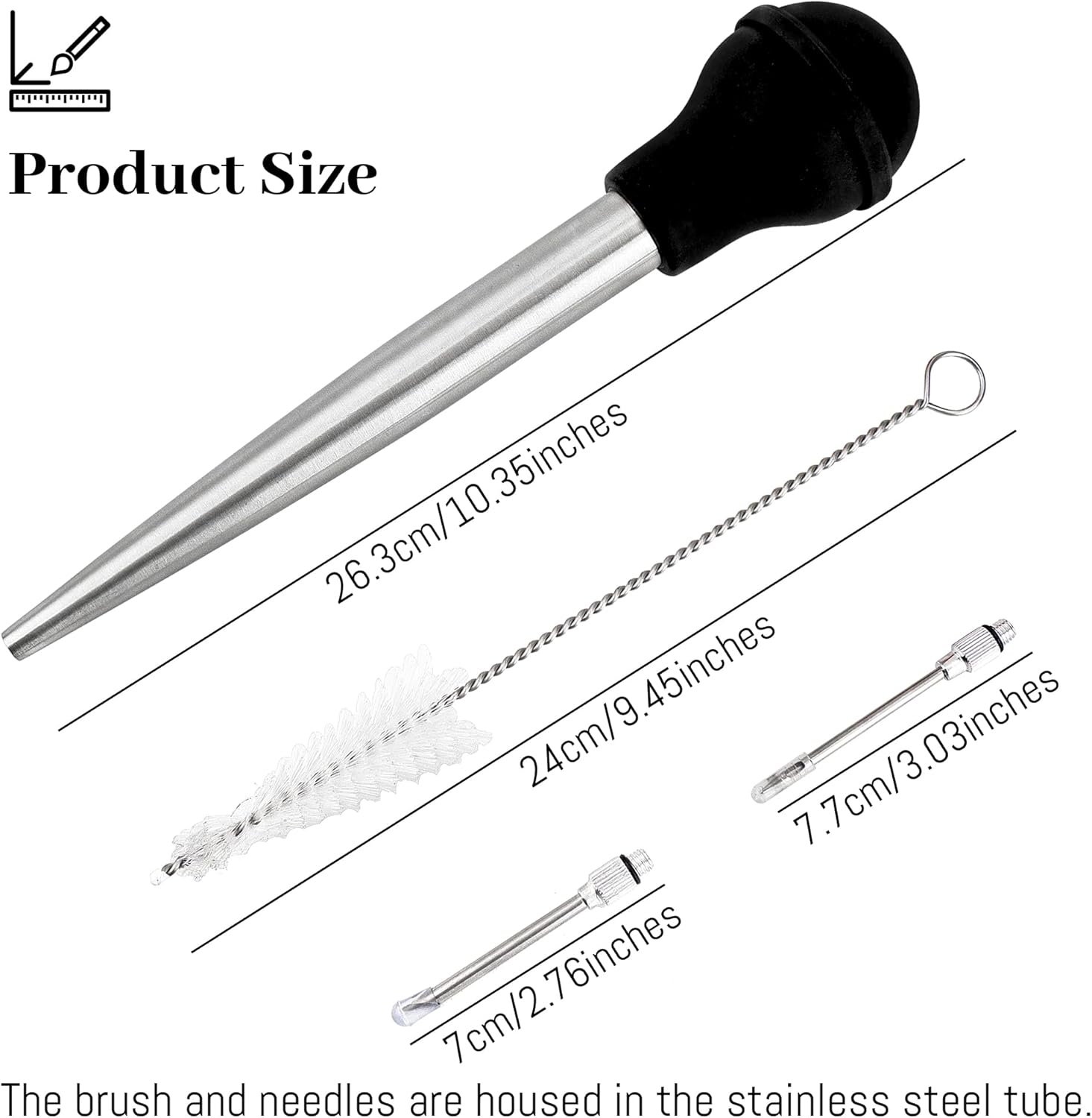 - Turkey Baster Set: The turkey baster set contains 1 bulb, 1 stainless steel tube, 1 cleaning brush, and 2 different turkey injector needles for flavor, it's a good kitchen assistant for your next Thanksgiving or Christmas dinner.