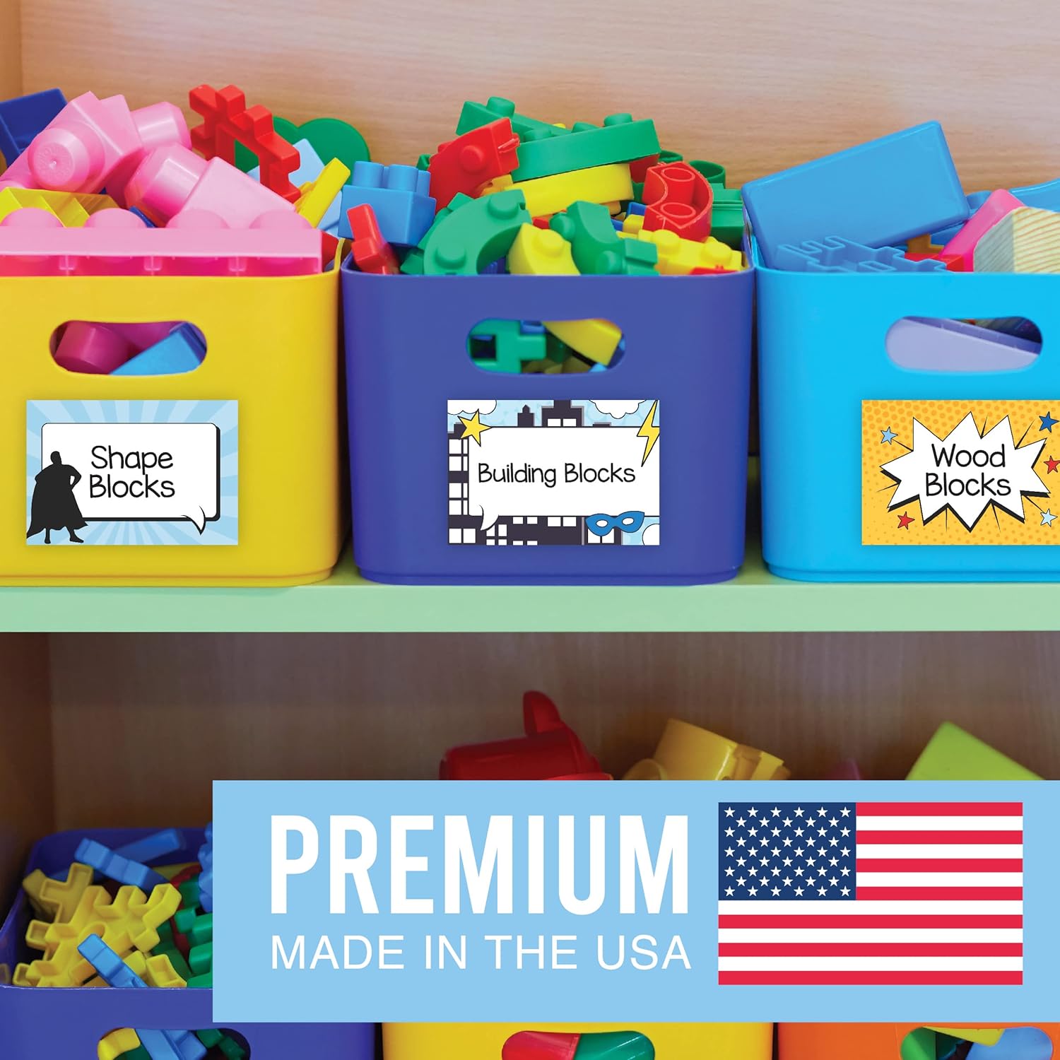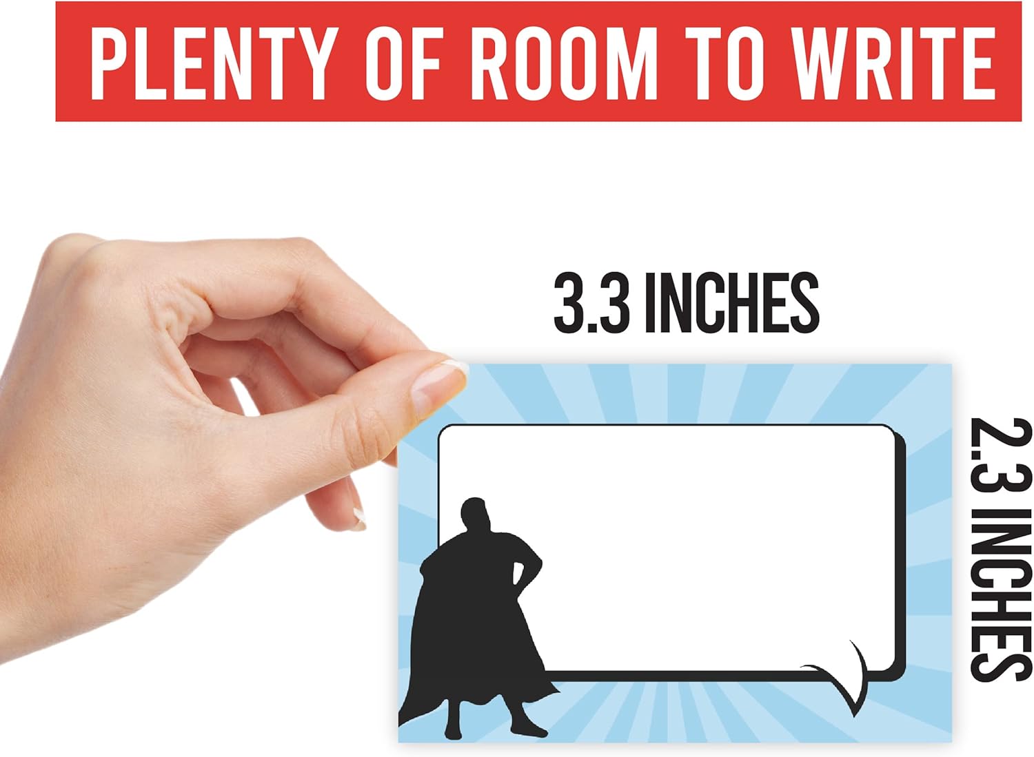 Name Tags Sticker - 56 Nametags for Classroom, Name Tag Stickers for Kids, Adhesive Classroom Labels for Teachers, Nametags Sticker for Clothes, Decorative Labels, Superhero Cubby Tags