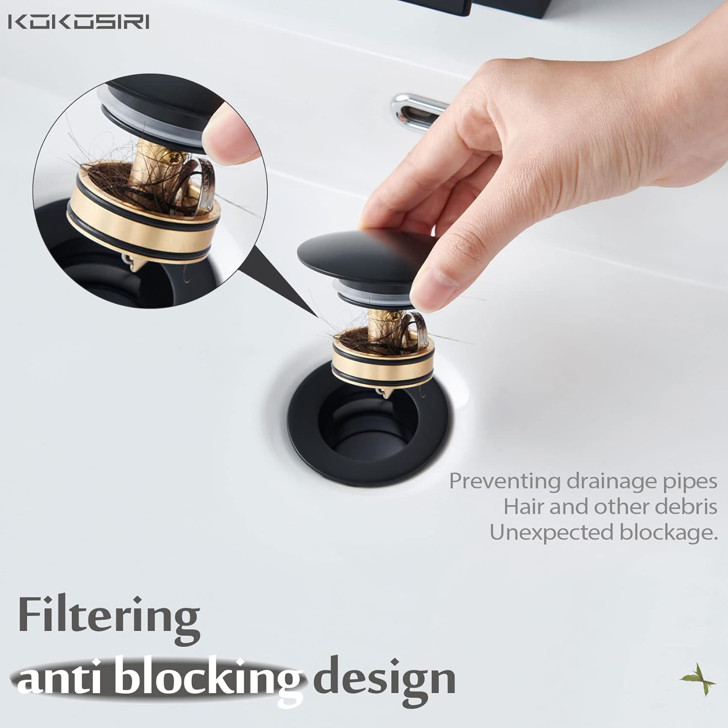 - ◄ IMPROVED DESIGN ► The drain stopper has a anti-clogging basket strainer inside that prevent stuff not get into the drain. And it is easy to clean up