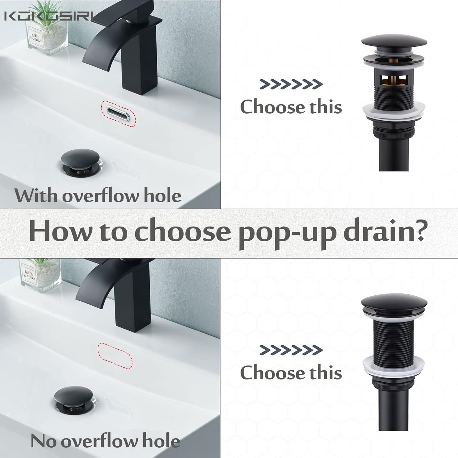 - ◄INSTALLATION REQUIREMENT ► The Bathroom Pop Up Drain is NO OVERFLOW, you need to make sure your sink basin WITHOUT OVERFLOW hole, the sink basin with 1 3/5"(min) drain hole