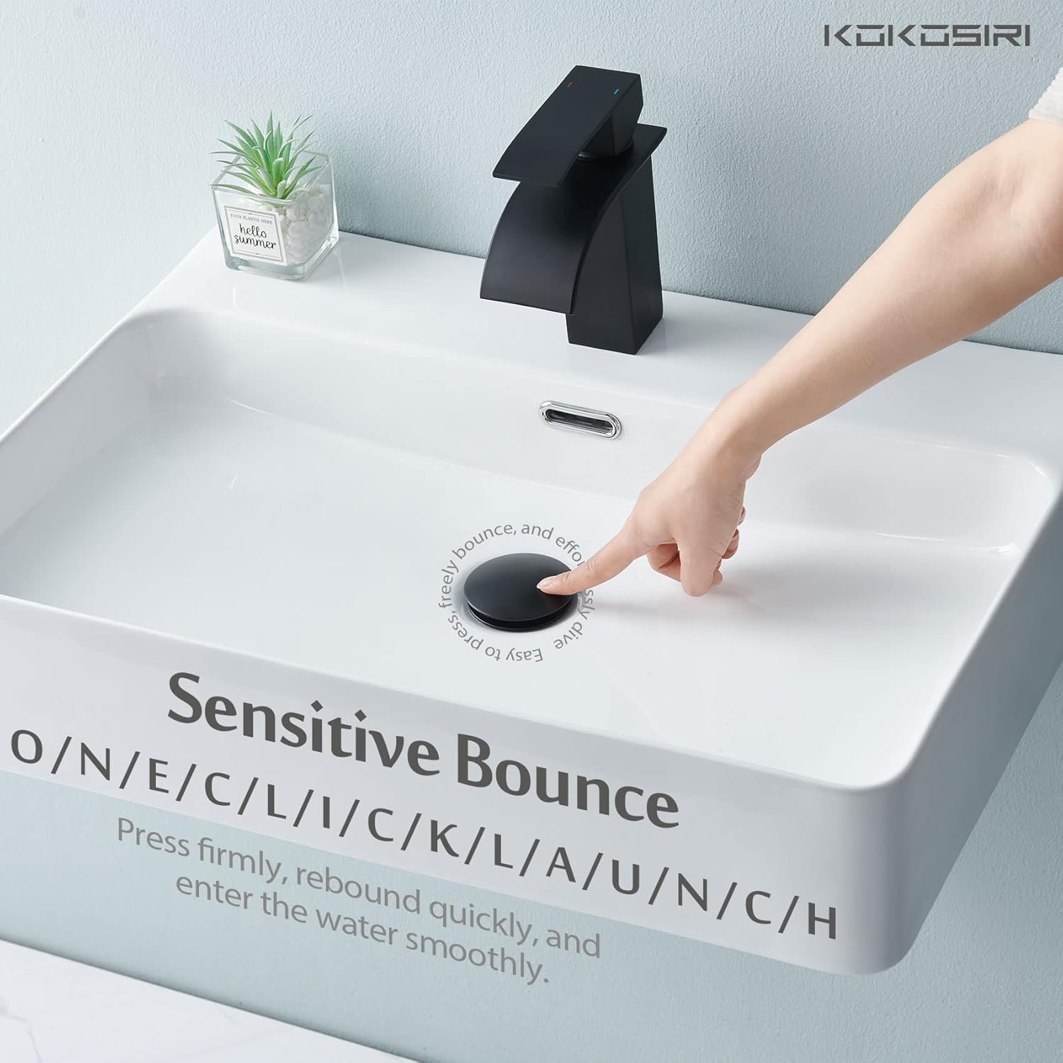 KOKOSIRI Pop Up Sink Drain with Strainer Basket, Matte Black Bathroom Sink Drain with Detachable Hair Catcher Anti Clogging for Vanity Vessel Sink without Overflow, C1002BK