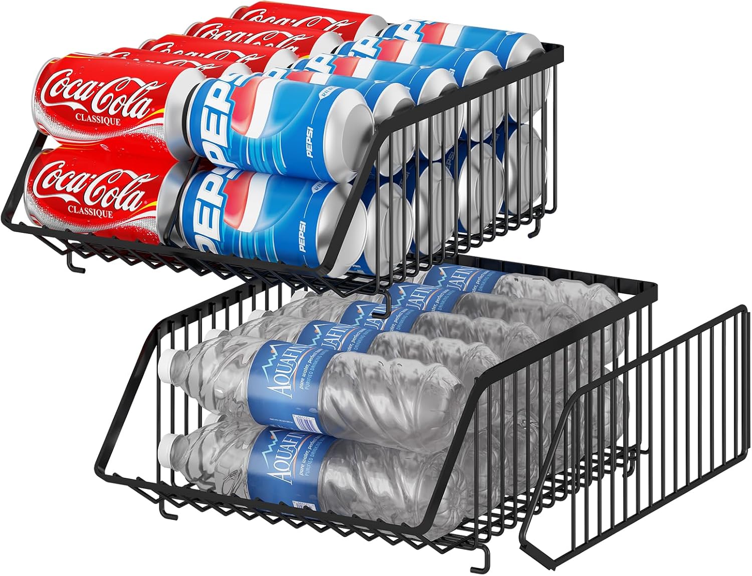 GILLAS 2 Pack Stackable Soda Can Organizer with Dividers for Refrigerator, Can Holder Dispenser Canned Food Organizer, Beverage Storage Basket Rack Drink Organizer for Fridge, Kitchen, Pantry, Black