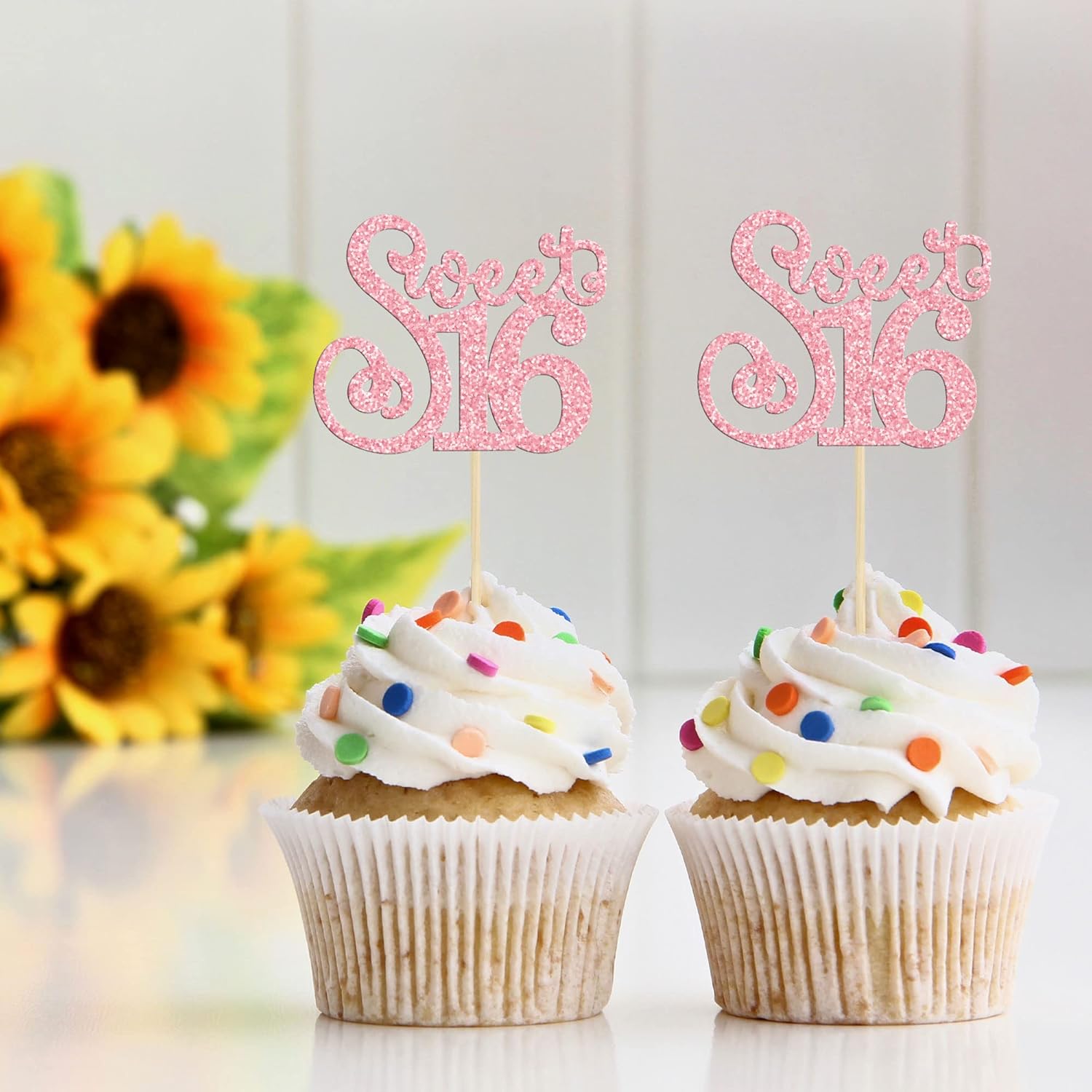 - 💕💕These Sweet 16 Cupcake Toppers are so cute and good for 16th birthday theme party, 16th anniversary theme party, 16 fabulous theme party cupcake decorations. They can make your cupcake more attractive and bring the fun to your party. You can also apply them for ice cream, fruits, cookies and other desserts.