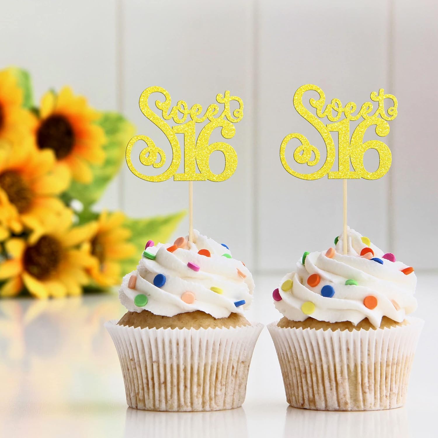- 💕💕These Sweet 16 Cupcake Toppers are so cute and good for 16th birthday theme party, 16th anniversary theme party, 16 fabulous theme party cupcake decorations. They can make your cupcake more attractive and bring the fun to your party. You can also apply them for ice cream, fruits, cookies and other desserts.