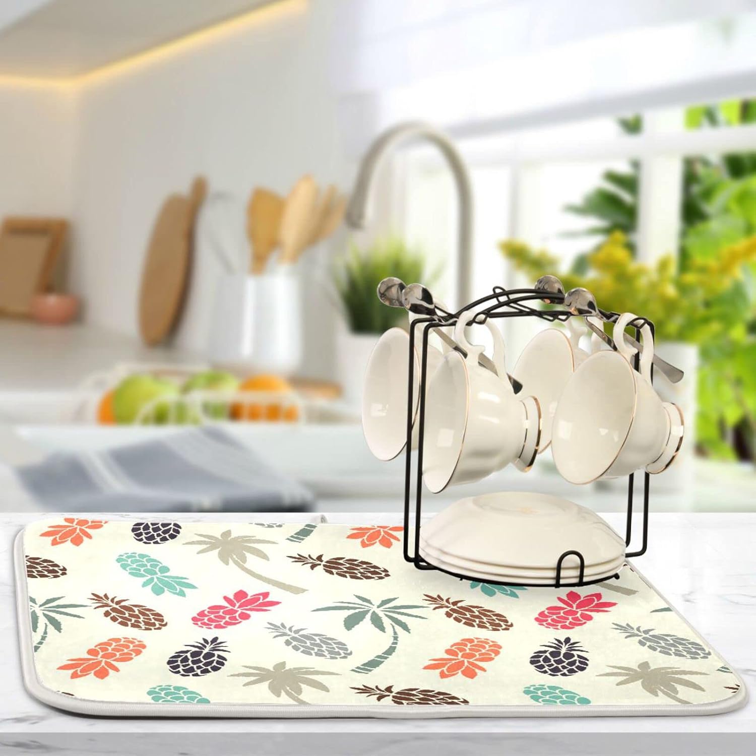 Super Absorbent Dish Drying Mat, Microfiber Fast-Drying Dish Mat, 16" x 18", Kitchen Dish Drying Pad Coconut Palm Trees Pineapples…