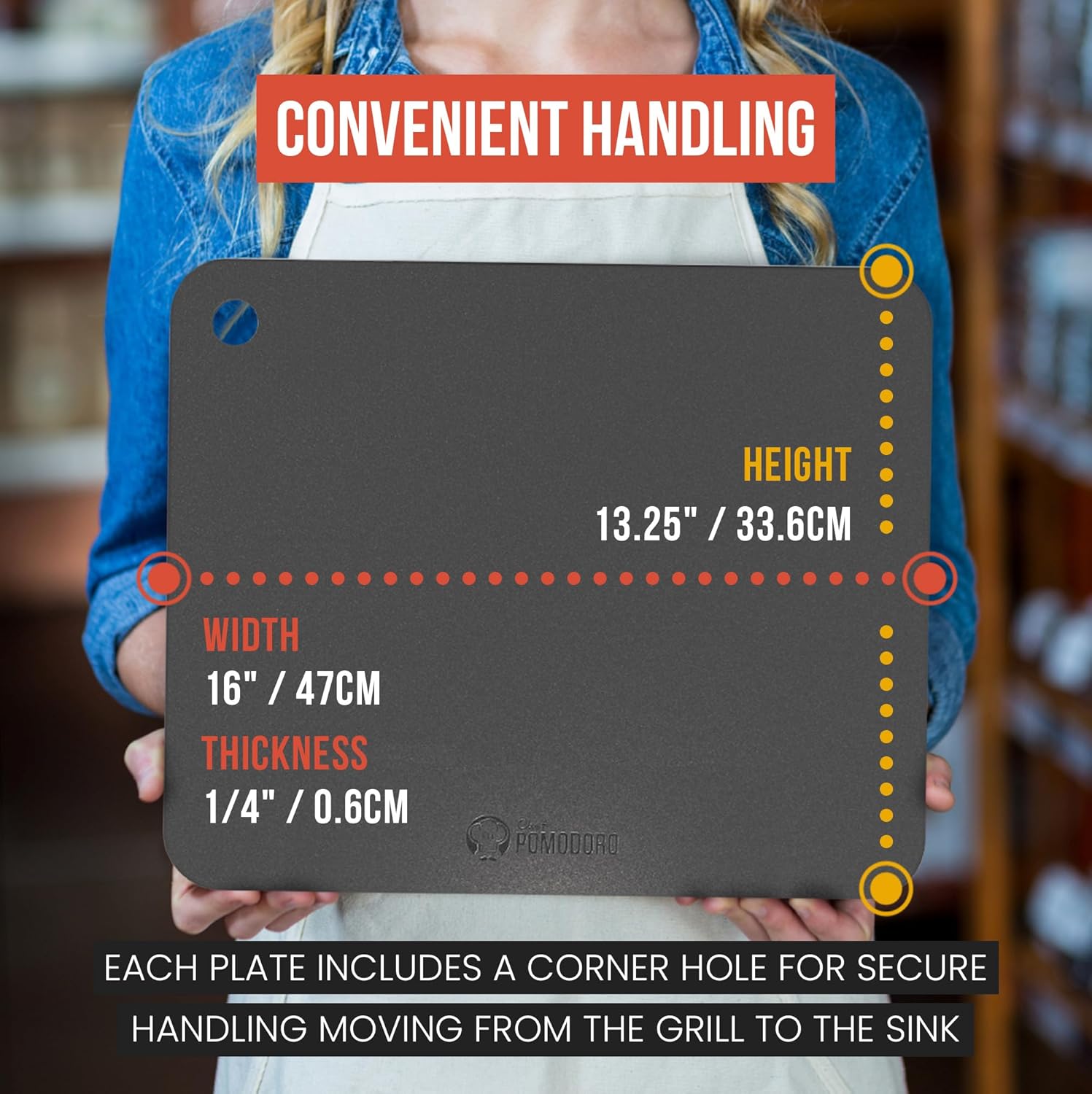 Chef Pomodoro Pizza Steel for Oven 16 Inch 1/4 Inch Thick, Baking Steel for Oven, Grill, Sourdough Bread, Baking Stone for Oven With Lifting Holes 16" X 13.25" (40.6 x 33.6 cm)