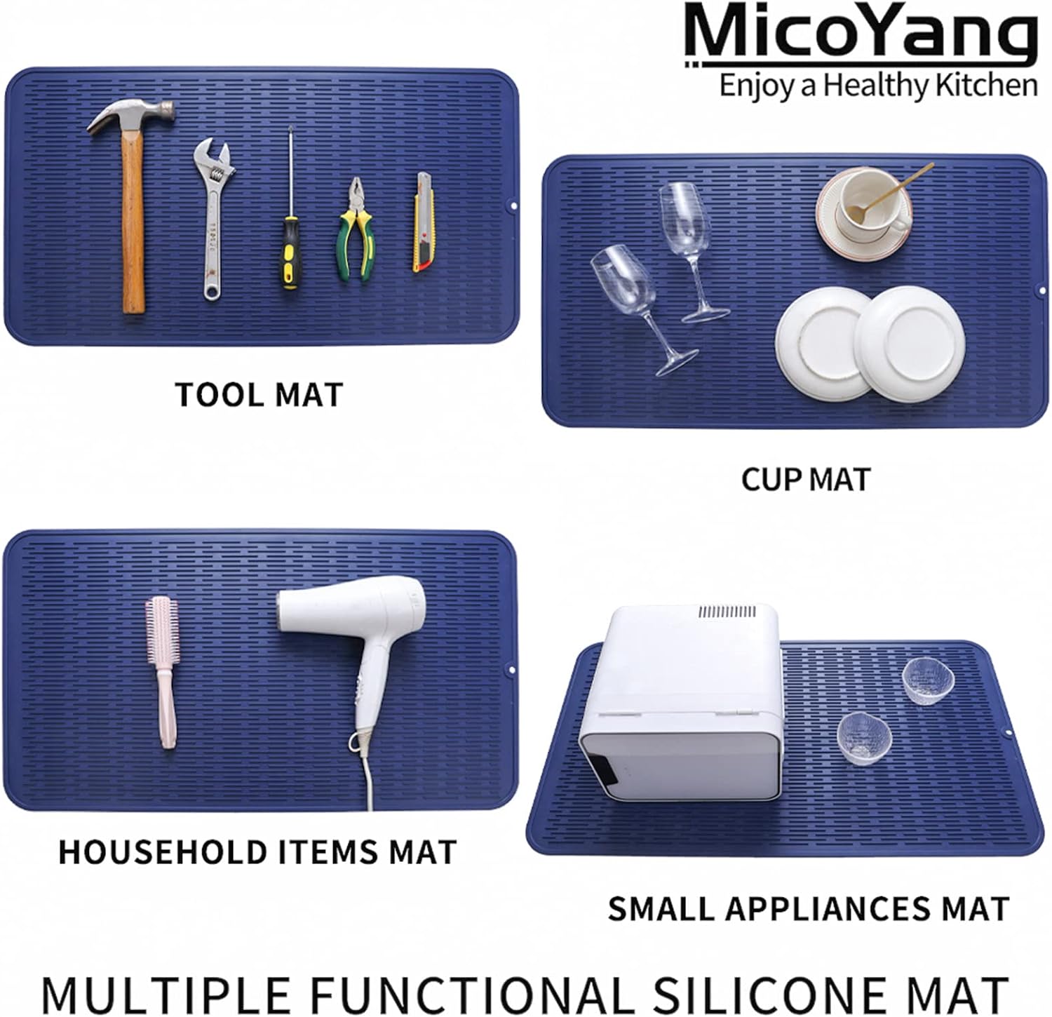 Silicone Dish Drying Mat for Multiple Usage,Easy clean,Eco-friendly,Heat-resistant Silicone Mat for Kitchen Counter or Sink,Refrigerator or Drawer Liner Navy Blue 4XL 32 inches x 18 inches
