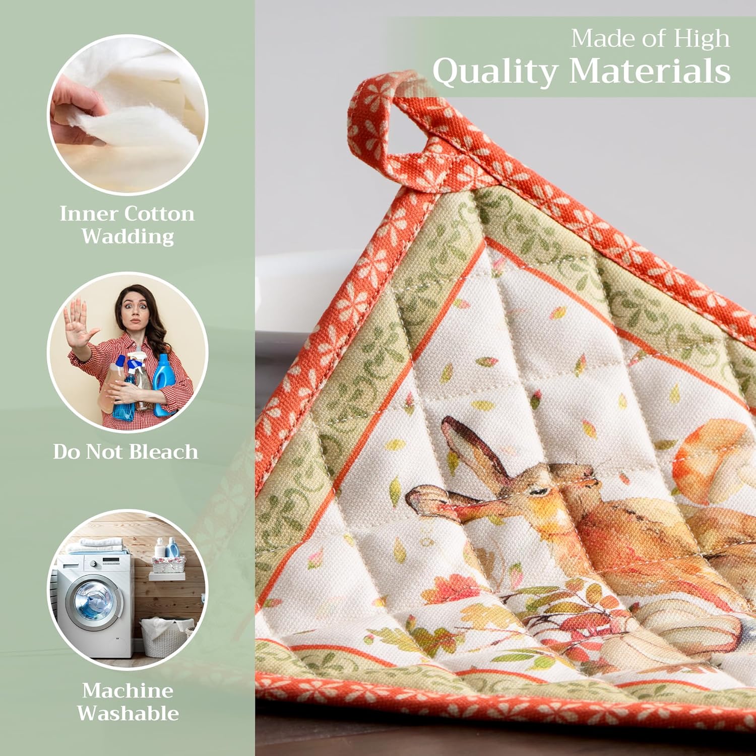 Maison d' Hermine Pot Holders Set 100% Cotton Heat Resistant Potholders 8" x 8" Hot Pads with Loop BBQ, Cooking, Baking, Grilling, Kitchen, Handling Hot Pans (Pack of 2, Pumpkin Passion)