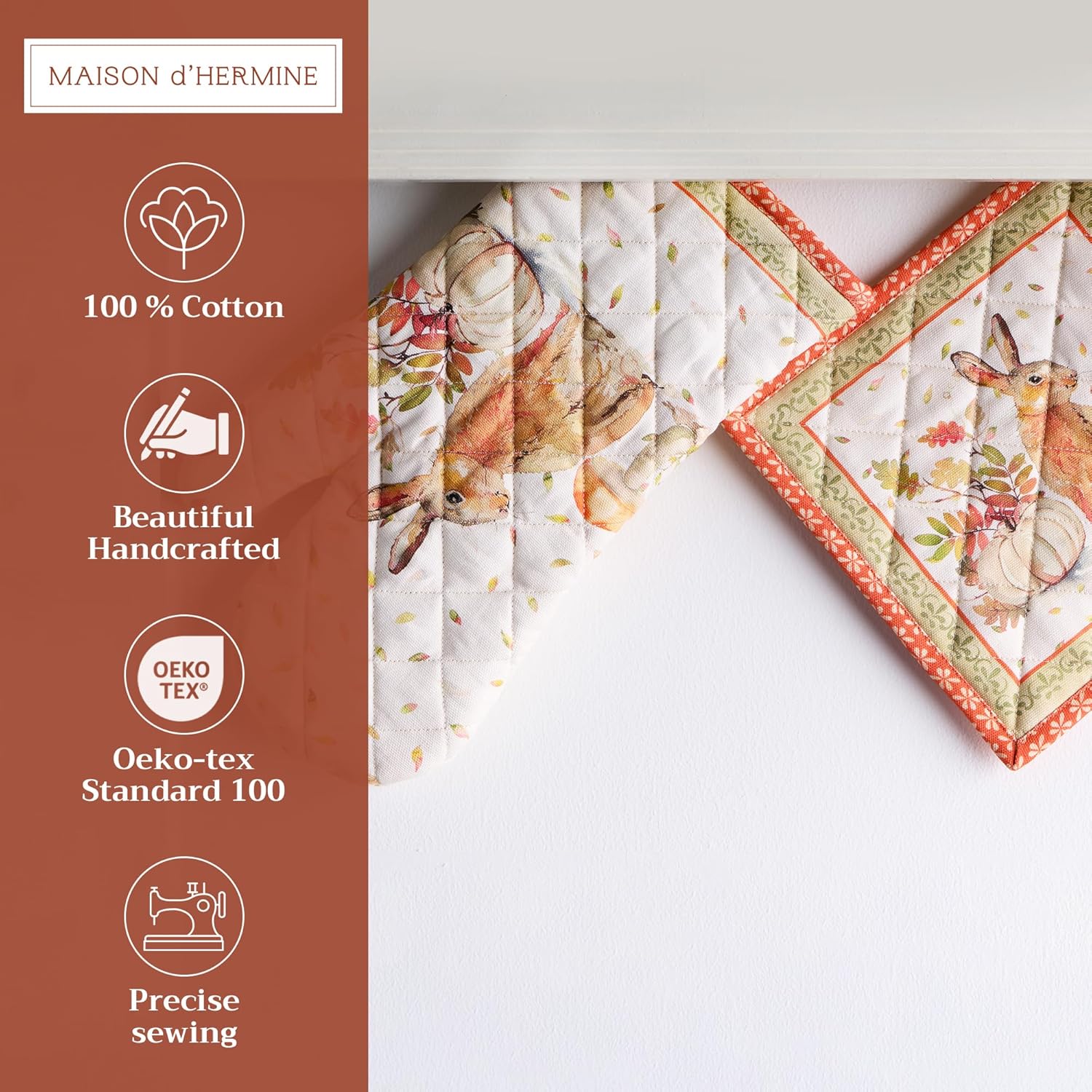 Maison d' Hermine 100% Cotton Oven Mitt & Pot Holder Set (7.5"x13" & 8"x8") Heat Resistant BBQ Cooking Gloves with Loop, Baking, Grilling, Kitchen, Handling Hot Pans (Pumpkin Passion)