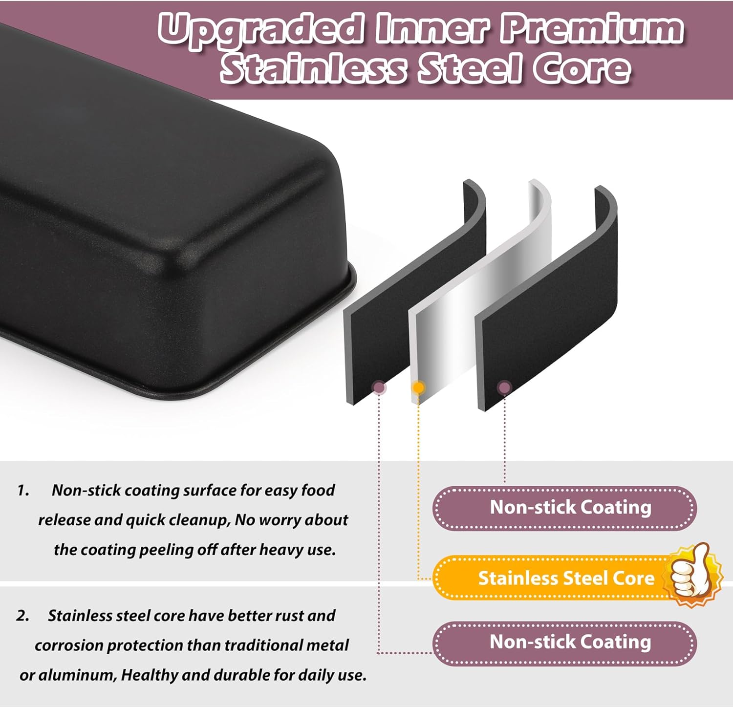 - 【NON TOXIC MATERIAL】Our bread pans are made of high quality stainless steel core with non-stick coating exterior, They are food-graded without any toxic materials, Will not release harmful substances into food at any temperature, Much stable than aluminum/metallic cake pan, Safe and healthy for your daily use