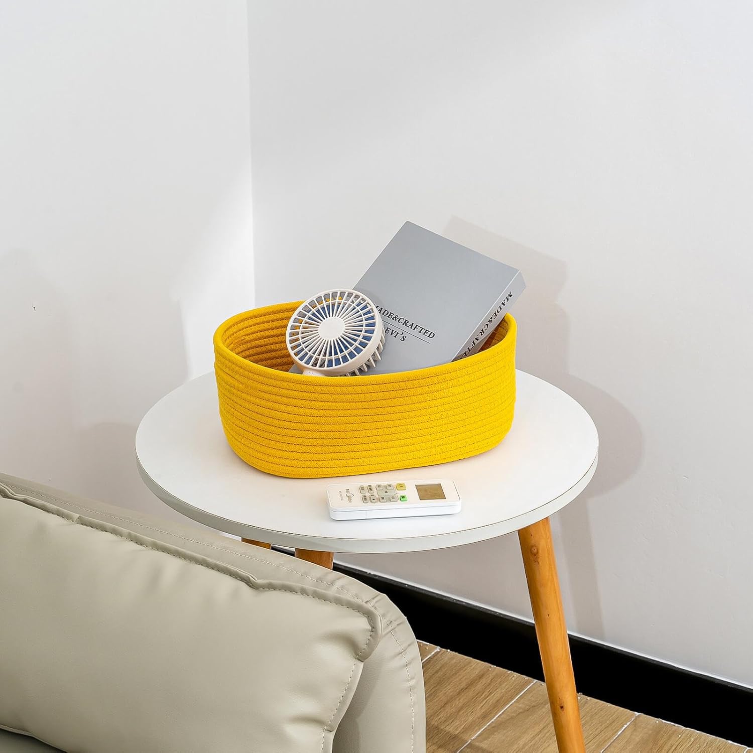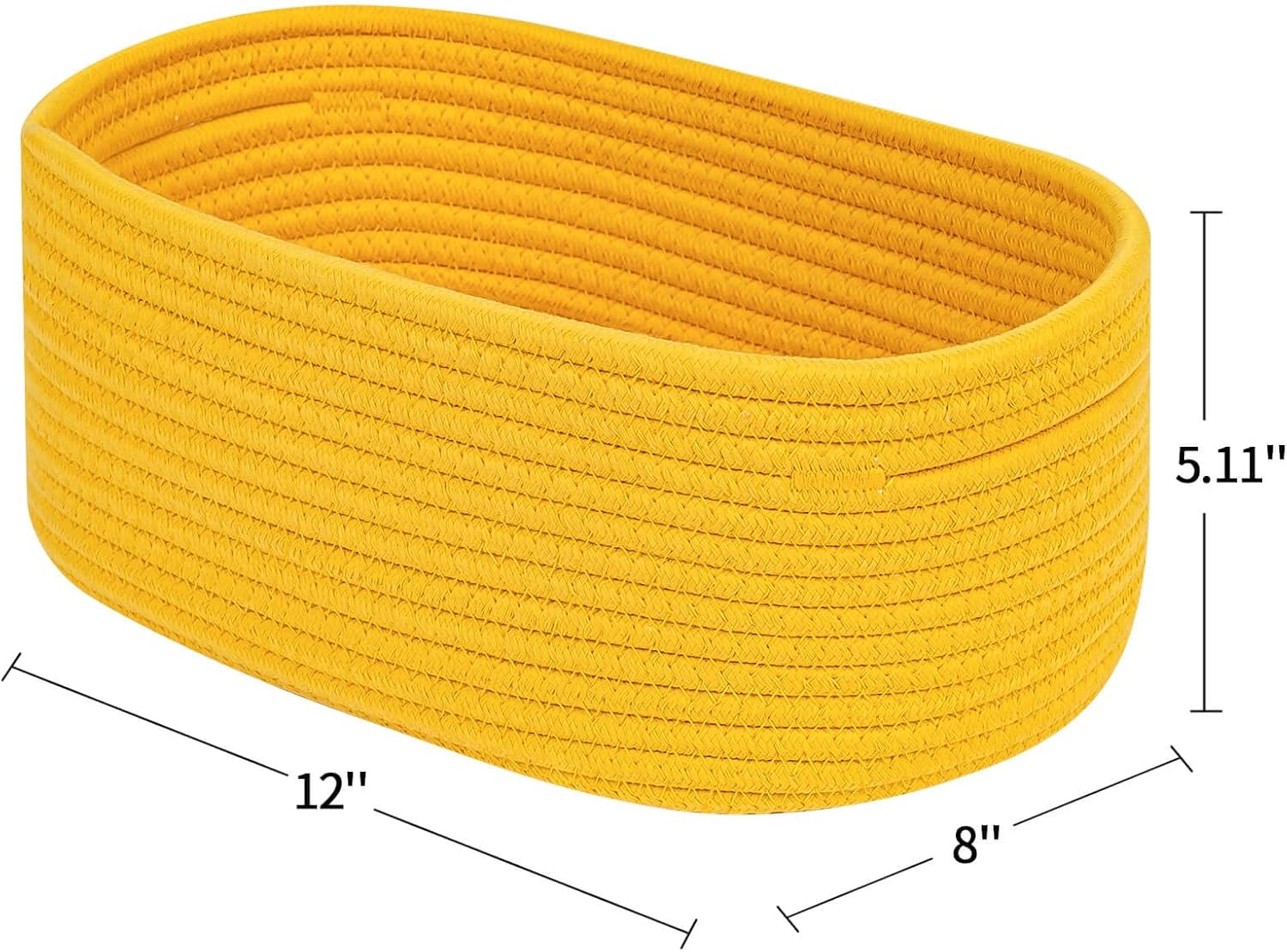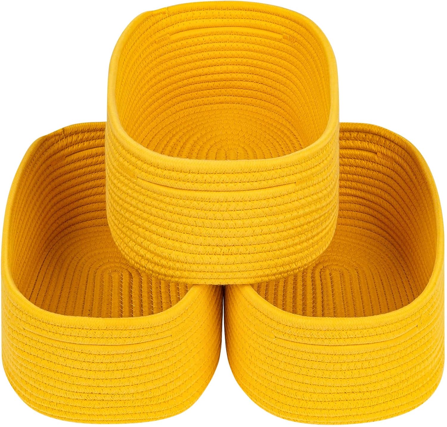 CubesLand Rope Woven Storage Baskets, Small Baby Nursery Organizer Basket, Rectangular Organization/Storage Bins, Closet Shelves Baskets,Empty Gift Basket 3 Packs, Yellow