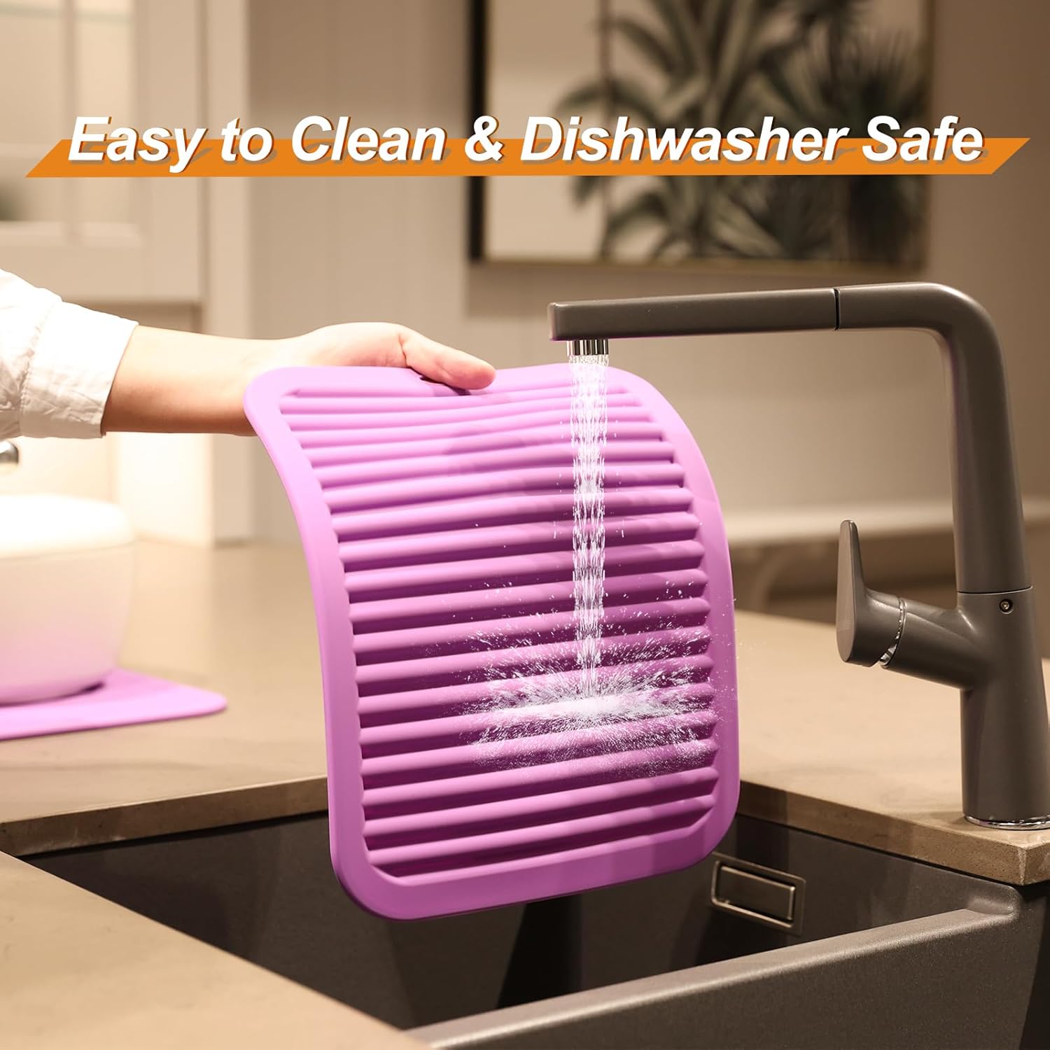 - EASY TO CLEAN & DISHWASHER SAFE - These trivets for quartz countertops are waterproof, plus stain and odor resistant. These kitchen hot pads are safe to pop in the dishwasher. It is non-stick and easy to clean. Roll up or hang on hook, save space. Experience a more convenient kitchen environment with these silicone trivet.