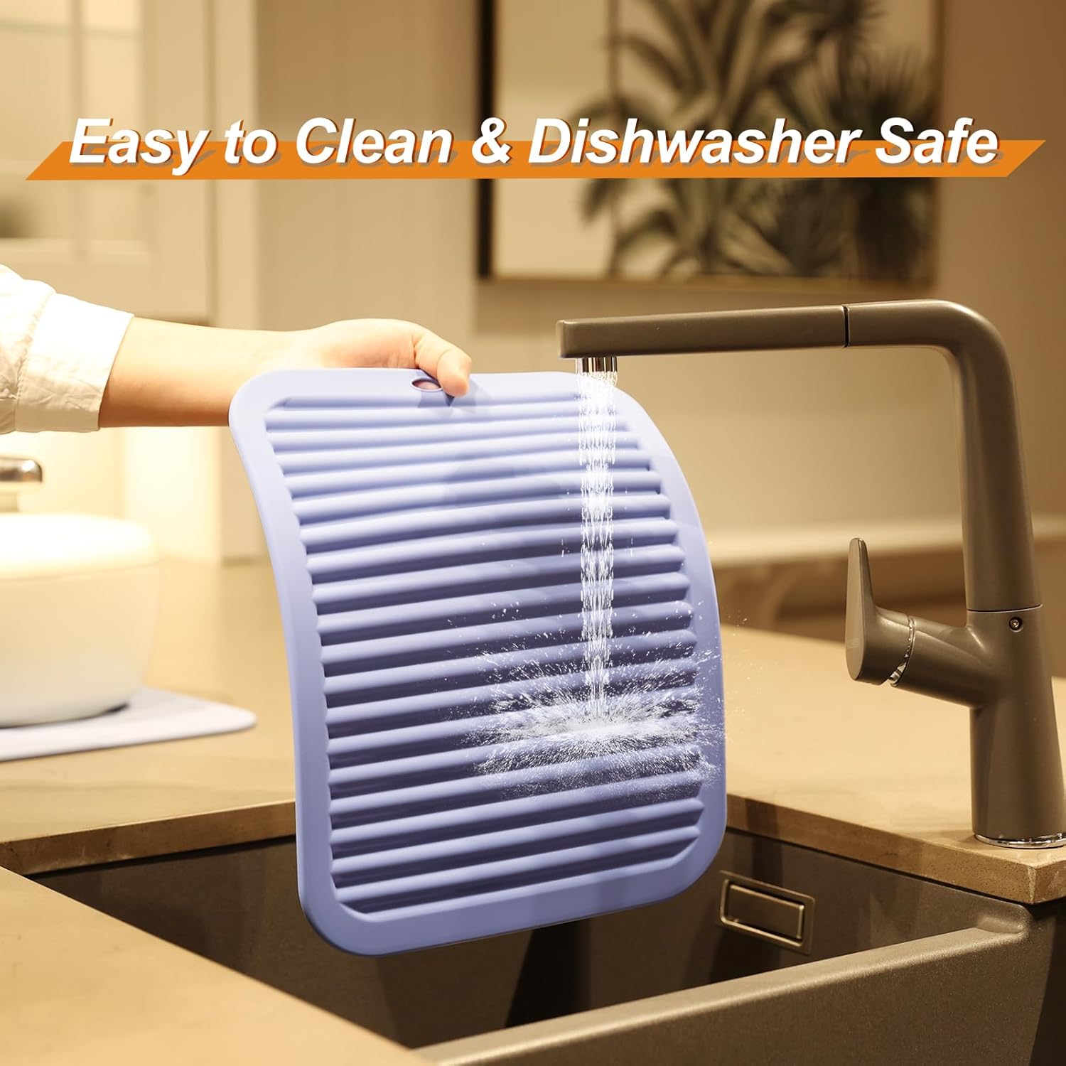 - EASY TO CLEAN & DISHWASHER SAFE - These trivets for quartz countertops are waterproof, plus stain and odor resistant. These kitchen hot pads are safe to pop in the dishwasher. It is non-stick and easy to clean. Roll up or hang on hook, save space. Experience a more convenient kitchen environment with these silicone trivet.