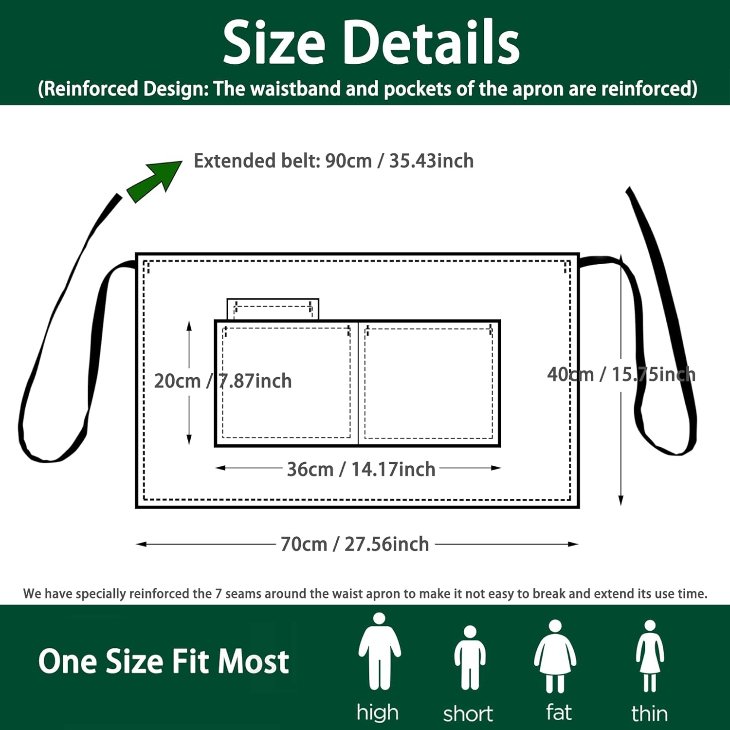 - Extended Waist Ties - The waitress servers apron back strap extended to 90cm (35.43 inch), long waist ties can be easily altered to fit most sizes, suitable for most men and women