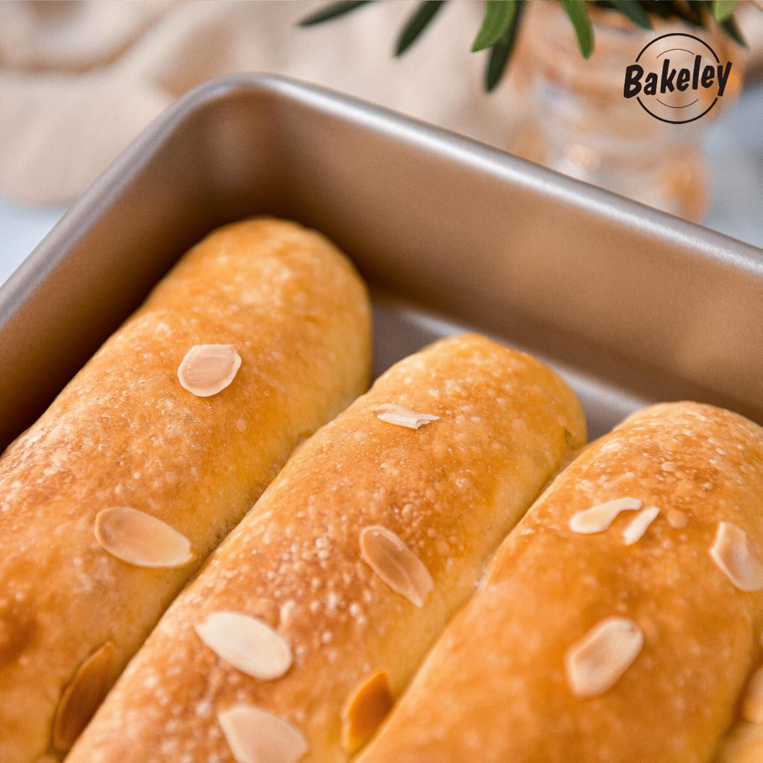 - Heavy Duty Baking Pan: Bakeley 9x9 Baking Pan adopts durable 0.8mm reinforced carbon steel (PTFE & PFOA FREE) resists bending at 450°F/230°C, the bottom of the baking tray will not deform and the edges will not curl at high temperatures in the oven